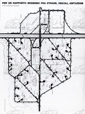 L'idea: poiché le città nacquero sempre dagli incroci, e poiché oggi gli incroci sono automobilistici, per l'espansione delle città si può pensare a un nuovo incrocio abitativo, derivato dal classico incrocio a quadrifoglio a flusso continuo, cioè a un'estensione abitativa dell'incrocio che includa grandi insulae di abitazioni entro una rete viaria a sensi unici di flusso senza interruzioni. Così Ponti vede, alla fine degli anni Sessanta, lo sviluppo delle città: nuovi nuclei nel verde, distaccati dal vecchio centro, ma ravvicinati dalle comunicazioni veloci.