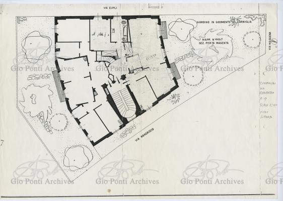 La casa di via Randaccio 9 è la prima casa di Gio Ponti a Milano e anche la prima delle quattro case da lui progettate e abitate. Piccolo monumento palladiano, la casa ha una pianta a ventaglio, una facciatina concava a obelischi, appartamenti quasi senza corridoi, e uno scalone fuori scala, disegnato perché lo si guardi anche da sotto in su.