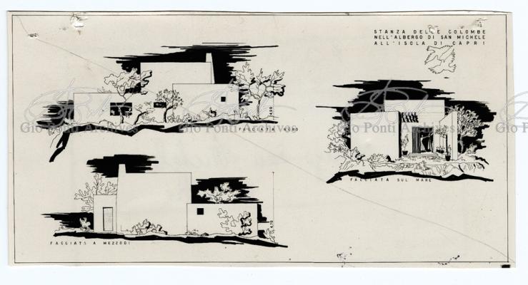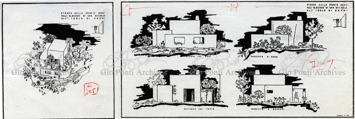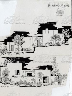 Il Mediterraneo insegnò a Rudofsky, Rudofsky a me:così Gio Ponti definì la sua collaborazione con Bernard Rudofsky negli anni Quaranta. Rudofsky aveva appena progettato, con Luigi Cosenza, la più bella architettura mediterranea d'Italia (prima della casa di Malaparte a Capri, di Libera): la villa Oro a Posillipo, del '86. Idee pontiane e rudofskiane confluiscono nell'invenzione dell'albergo San Michele a Capri: un albergo spontaneo, fatto di case-stanze separate, sparse in un bosco, ognuna con un patio, ognuna con un nome; e dalle case tanti sentieri-corridoi convergono a un minuscolo paese, cuore dell'albergo, ove risiede il direttore (anzi, il gentiluomo che governa il luogo)