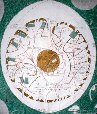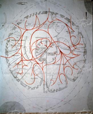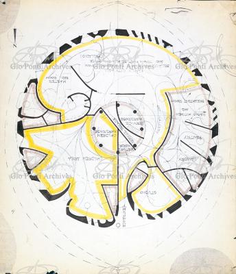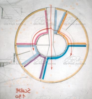 Di questa villa per un terreno in collina, più pensata che progettata, restano gli schizzi. L'idea è quella di un grande tetto, una foglia, che copra un corpo circolare; corpo suddiviso all'interno da diaframmi in curva, con la sorpresa di passaggi minimi, di slarghi improvvisi, e circonvoluzioni nei percorsi (Ponti scriveva dentro gli schizzi: Palladio: la casa sia come una piccola città, e la città come una grande casa). Le aperture, tagliate in obliquo nello spessore della parete-corteccia, sono larghe o sottili, finestre o feritoie.