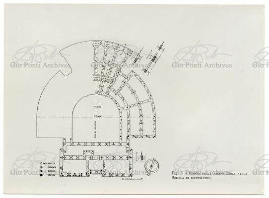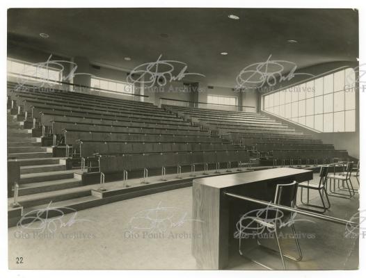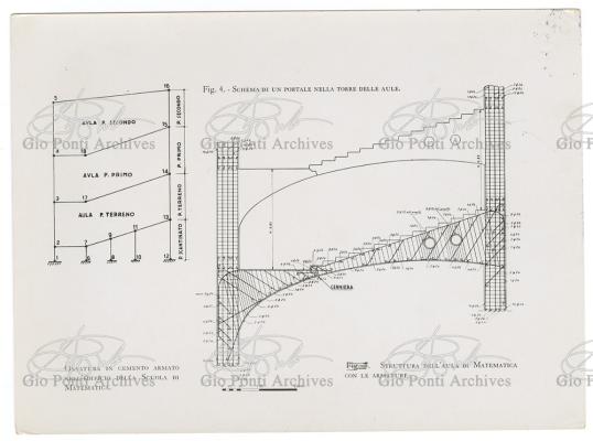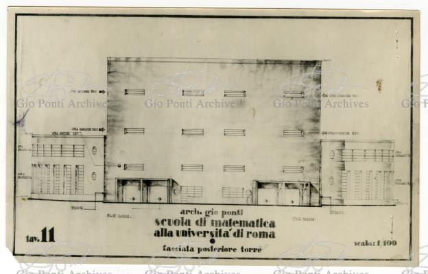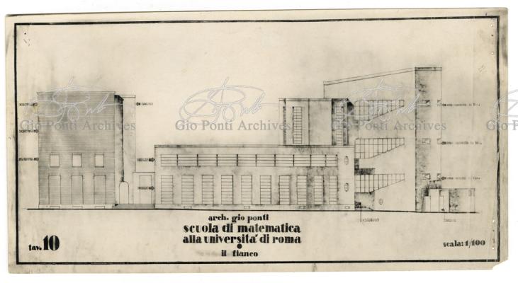 Al progetto della nuova Città Universitaria di Roma, per dodicimila studenti, inaugurata il 31 ottobre 1935, partecipano, su invito di Piacentini,giovani architetti fra i migliori di ogni regione. Anche il giovane Ponti. Che amava, di questo suo progetto non-monumentale, la soluzione a corpi distinti: il corpo rettangolare della Matematica Pura, con biblioteca e sale, le due ali curve delle aule di disegno, la torre delle tre aule a teatro. Soprattutto amava la torre, in cui il profilo delle tre finestrate sovrapposte rivelava all'esterno il profilo dei tre sovrapposti ambienti interni. Alla struttura collaborò l'Ingegnere Zadra.