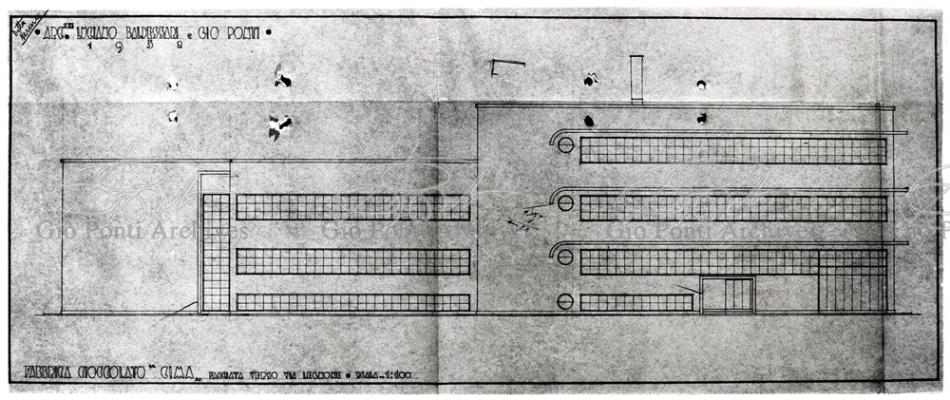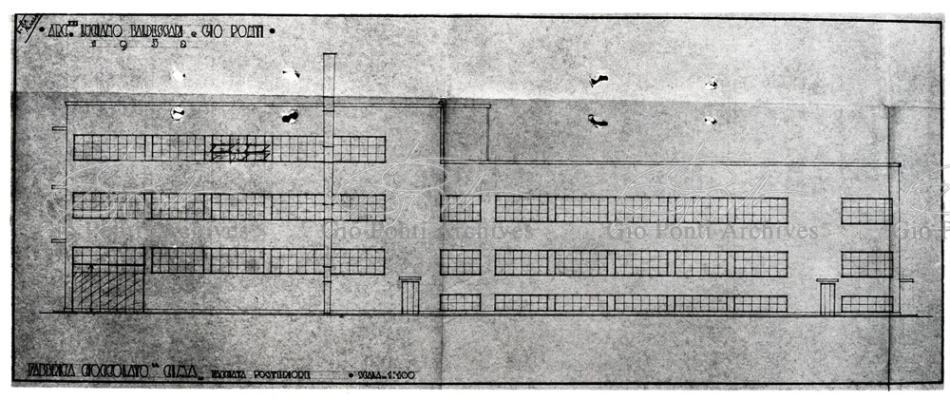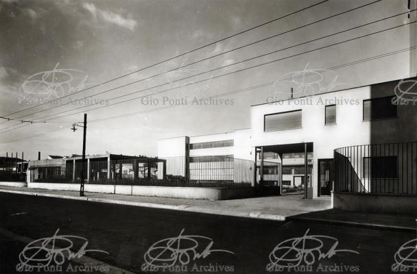 Luciano Baldessari e Gio Ponti collaborano in questo edificio, piccolo, immediatamente segnalato in Casabella come bellissimo esempio di quel che può avvenire quando si affidano agli architetti degli edifici industriali.