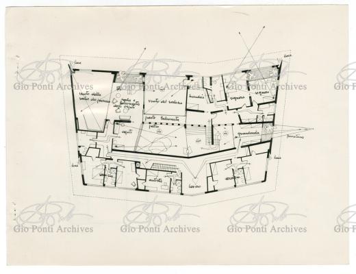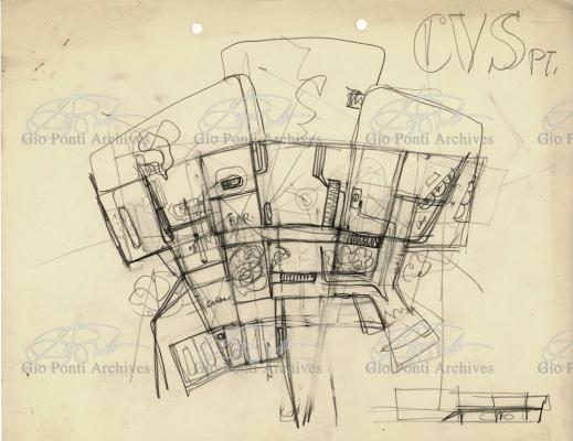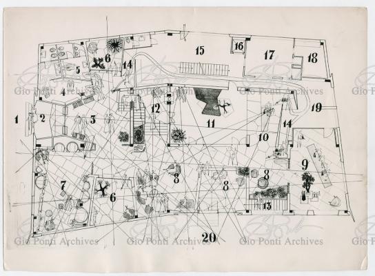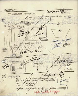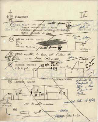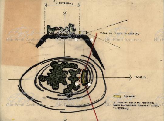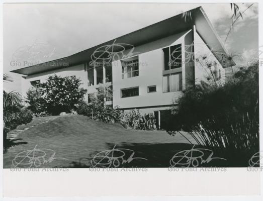 The principle of this architecture, which is the daughter, like Pirelli, of the new researches born from the trips to Latin America 1952-53, is the evidence of the worn surfaces : the external walls, carried, appear detached from each other, and detached from the cover and from the ground. More than volumes, the building appears to be made up of suspended floors. And this also appears at night, since there is, for this architecture, a nocturnal project of self-lighting, as Ponti calls it. Without weight or mass with the slenderness that Niemeyer has revealed to us , the building appears to rest amiably on the ground, like a butterfly. In Caracas the villa was immediately called a Florentine villa, and Ponti liked this, precisely because he had never had a problem with Italianness, just being Italian. Villa Planchart, with Villa Arreaza in Caracas and with Villa Nemazee in Teheran, is one of the three villas of these years, in which Ponti was given full power to invent.