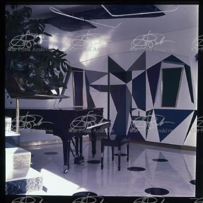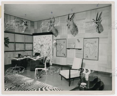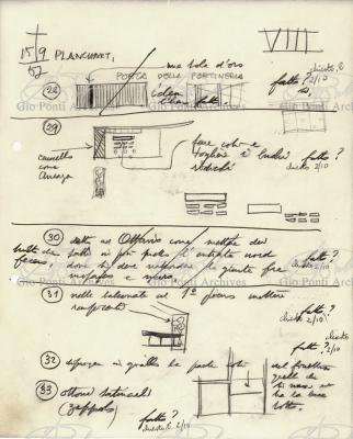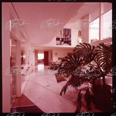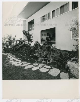 And it is fortunate, because this architecture - a spectacle of spaces for those who enter and walk through it - has an entirely internal game of inventions, of entertainment, as rich as the tropical vegetation it incorporates. Look at the patio decorated by Melotti, and the theatrical windows and balconies overlooking the emptiness of the living room, and the doors and ceilings designed by Ponti.