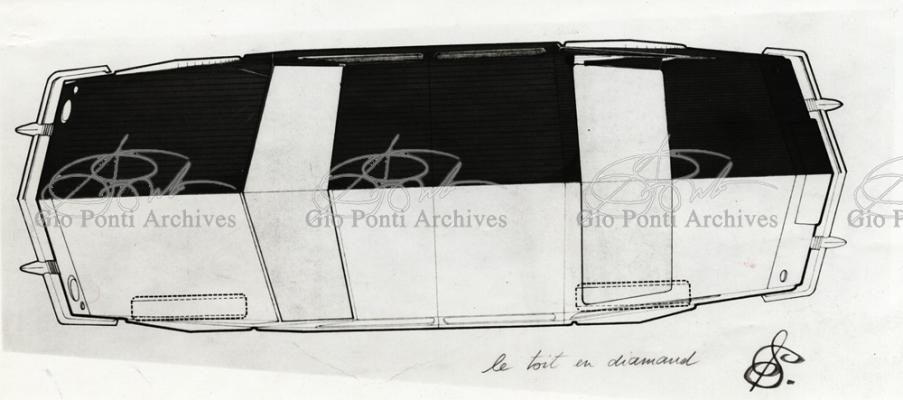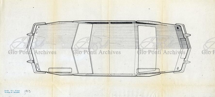 Gio Ponti had devised this form in reaction to the cars of that time, swollen, full of empty spaces, (borax, as Edgar Kaufmann used to say) with very high radiators, tiny windows, and dark interiors. It was a form ahead of its time: the body sheets are flat, not curved stiffened with folds and not ribs; the hood is low, the windows are very large, the back seats are adjustable like in airplanes, as people used to say at the time, the trunk is extremely capacious, accessible from the inside and separate from the spare wheel housing; the interior is spacious, bright, and filled with pockets. One innovation: the bumper made of rubber (provided with spring buffers at front and rear) that runs right round the car.