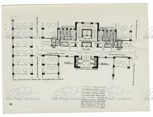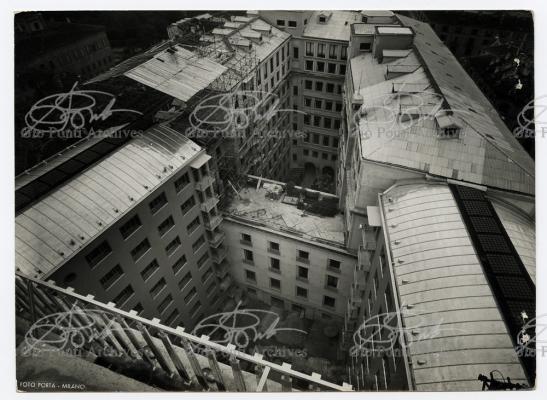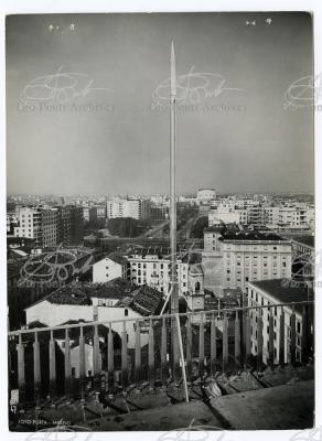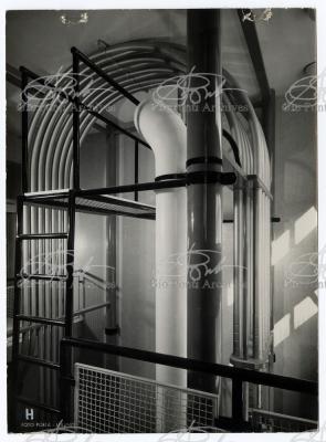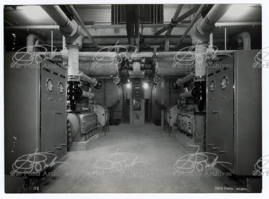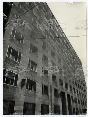 As for the architecture of the building, Gio Ponti expressed doubts about it, years later: to what extent can this building, which relies for its image on a rhythmically end-less wall, and to which another story was easily added after the war, be called architecture, if architecture is as in the Pirelli building finite form. The building was subject to the dimensional constraints of the site and the building regulations we should look forward to a kind of city planning in which buildings, independent of frontal alignments, can be unitary, rational, correctly oriented, free from distortions.There were two images of this building that were particularly symbolic for Ponti: the foreshortened view of the airy sidewall and the interlacing of the colored tubes of the pneumatic dispatch system (my Leger»). The design of the building was the work of Ponti and the engineers Antonio Fornaroli and Eugenio Soncini Studio Ponti Fornaroli Soncini, with the collaboration of engineer Pier Giulio Bosisio.