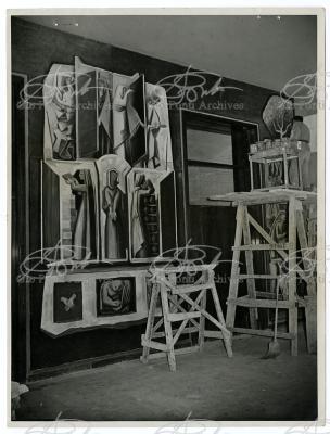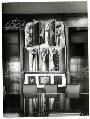 Ponti painted frescoes not only in Padua but also in Milan, in some rooms of the Popolo d'Italia building. In these frescoes the painted figures are not set against a void as in the Padua frescoes but framed by painted doors, a play of doors, which would reappear in Ponti's surprise furniture of these years.