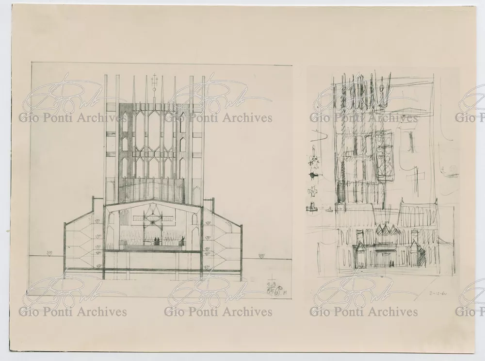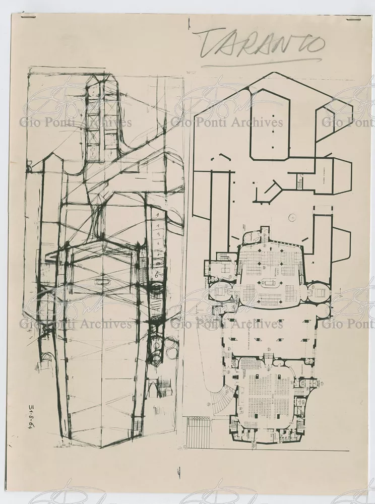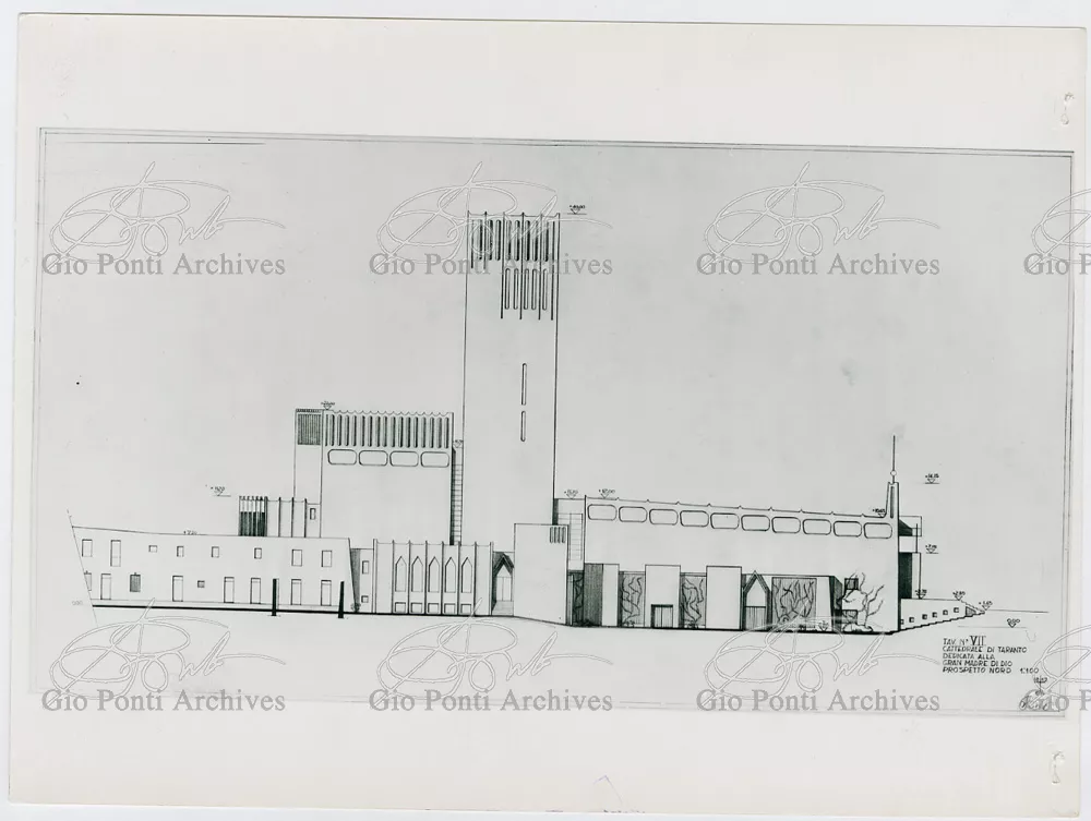 La cattedrale di Taranto che oggi sta sostituendo in popolarità la Torre Pirelli, si fonda su un'idea senza precedenti: la vela (così l'ha chiamata subito la gente) in luogo della cupola, o delle torri, come alto segnale. La vela è una facciata sul cielo. Dice Ponti: Ho pensato: due facciate. Una, la minore, salendo la scalinata, con le porte per accedere alla chiesa. L'altra, la maggiore, accessibile solo allo sguardo e al vento: una facciata per l'aria, con ottanta finestre aperte sull'immenso, che è la dimensione del mistero…