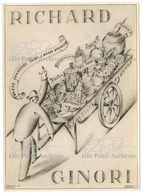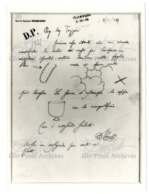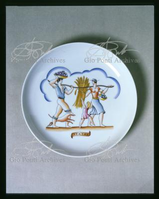 Quando la Richard-Ginori vince a Parigi il Grand Prix alla Expo del 1925 (Exposition International des Arts Décoratifs et Industriels Modernes), il giovane Ponti è direttore artistico da due anni e ha rivoluzionato l'intera produzione. (Ci sono, a questa Expo, due punti luminosi italiani: la saletta neoclassica di Ponti e la sala futurista di Prampolini: colpiscono la critica francese, e si ignorano fra loro.) Il periodo Ponti ha un duplice valore, nella storia moderna della Richard-Ginori. Alla Manifattura Richard-Ginori di Doccia, Ponti non solo inventa e disegna (per le mani abili di allora) i famosi Grandi Pezzi d'Arte Destinati alle Collezioni e ai Musei (da La conversazione classica a La casa degli efebi, ai Vasi delle Donne e delle Architetture). Ma anche organizza un sistema di famiglie di pezzi (da grandi a piccolissimi, dalla famiglia del Blu Ponti con oro inciso a punta d'agata alla famiglia del gran rosso di Doccia) con cui risuscita e insieme fa proliferare l'intera produzione, e la spinge alla serie. Con lo stesso spirito Ponti promuove il primo catalogo completo della Ceramica Moderna d'Arte Richard-Ginori (con testi in italiano e in inglese), disegna lui stesso la pubblicità della Richard-Ginori in Domus, 1928, provoca i contatti della Richard-Ginori con le grandi esposizioni del momento, suscita occasioni di grandi interventi ambientali per la ceramica. È questo il modo con cui Ponti collabora con le industrie, e sarà così per tutta la sua vita. Con entusiasmo e distacco. (Così il suo neoclassico è un divertimento segreto: nei suoi labirinti gli angeli portano la sacca da golf) E Carlo Zerbi e Luigi Tazzini, dirigenti alla Manifattura di Doccia quando Ponti vi entrò, saranno i primi destinatari delle sue sempre urgenti lettere scritte e disegnate (lettere che martelleranno, felici, tutti i collaboratori: sono le sue lettere più belle, senza ossequio e senza sentimento): nei vasi l'esecuzione sia espressiva, e perfetta e bella, e le architetture tocchino pure un po' le nubi, non sta male: tutto il resto bene, e si facciano subito copie, e le riproduzioni degli oggetti venduti a Parigi siano fedelissime e accuratissime: è per l'onore della nostra casa, e si fotografino tutti i pezzi nuovi: manderemo le foto a Ojetti, a Parigi, a Monza: una serie o due occorrerà tenerle per Maraini, che potrebbe scrivere qualche articolo su riviste inglesi e americane: avete letto il Corriere di oggi? A Sesto Fiorentino il Museo delle Porcellane di Doccia conserva quattrocento pezzi del periodo Ponti (interno al Quinto Periodo della storia della Manifattura). La collaborazione di Ponti si estenderà a episodi successivi negli anni Trenta (e troveremo sempre le mani abili di Elena Diana) e negli anni Quaranta e Cinquanta.