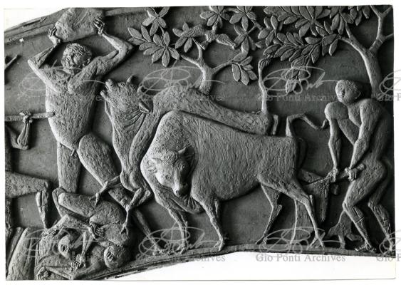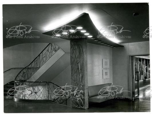 Ma si trattava sempre di vestire, non progettare, il transatlantico. E allora le navi arredate da Ponti in questi anni -navi cariche d'arte, viaggiante annunciazione dell'Italia -ebbero due innovazioni nel rivestimento dei loro immodificabili interni. Pareti (e colonne) in leggerissimo alluminio, un impiego mai sperimentato prima, e soffitti illuminati: i bassi soffitti navali diventano leggeri spettacoli aerei (Conte Grande, Conte Biancamano, Giulio Cesare, Andrea Doria). Anche negli interni di navi, come negli interni di case in questi anni, Ponti scatena il divertimento decorativo per eccesso. E, come negli interni di case e nelle pagine di Domus in questi anni, l'arte italiana che Ponti imbarca è soprattutto ceramica: Fontana, Melotti, Leoncillo. E vasi di Gambone, Melandri, Zortea, e smalti di De Poli, disegnati da Ponti. E pittura di Fiume, in dimensioni teatrali.