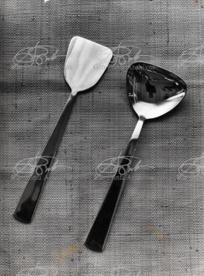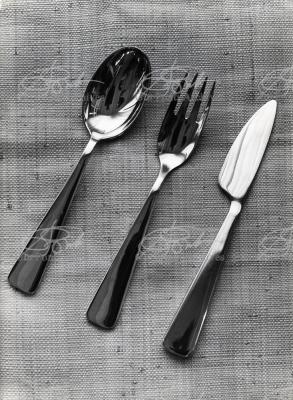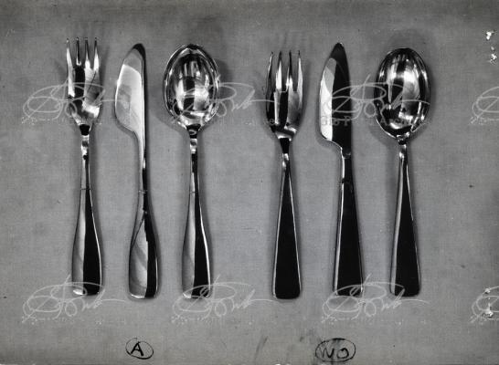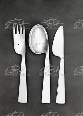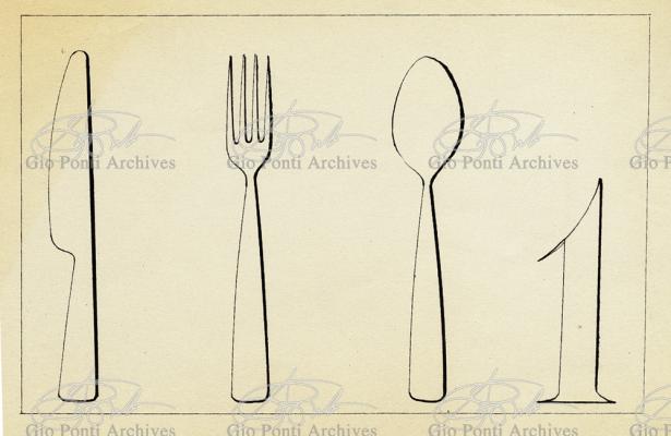 Il "nuovo modo di pensare questi arnesi, le posate", anzi, la loro "forma perfetta " ("adottata entro vent'anni da tutti "), è questa, dice Ponti: coltello a lama corta con profilo obliquo (per tagliare noi usiamo solo la punta della lama, inclinata sul piatto), forchetta a denti corti e un pò concava (per raccogliere il boccone noi usiamo solo la punta dei denti, e nella concavità raccoglieremo anche il sugo).