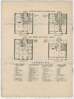 Ponti: quando il terreno è profondo, e la facciata stretta, gli appartamenti si sviluppino su due piani ognuno. Qui gli appartamenti hanno un piano più alto, per le sale e la camera dei genitori, e un piano più basso per i figli e per i servizi; ingressi separati, uno per piano; grandi aperture a veranda in facciata.