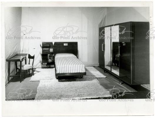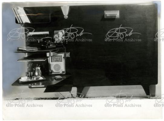 Alla fine degli anni Quaranta Gio Ponti mette a punto un principio che non abbandonerà più, nei suoi arredi: il principio della parete organizzata, cioè del pannello a parete che raccoglie una composizione di piani e di oggetti.