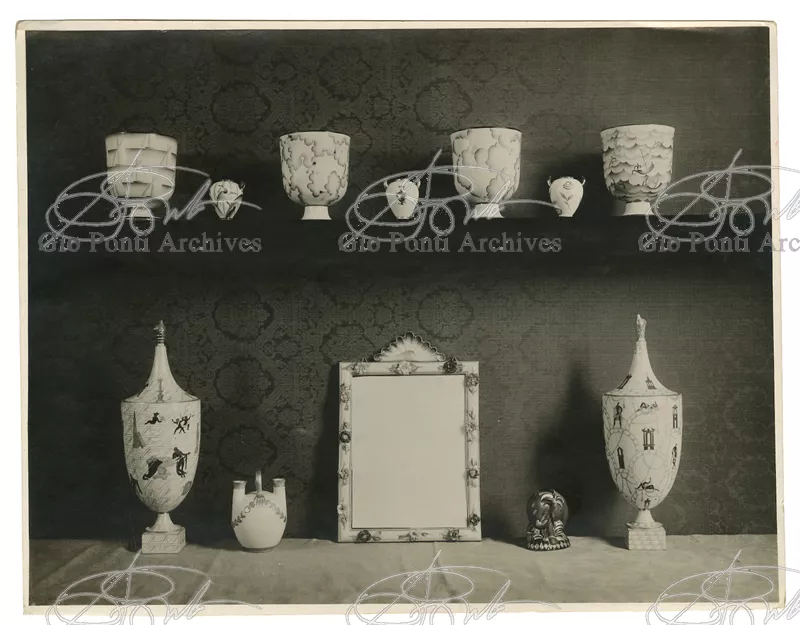 Among the collections of the Museo delle Porcellane di Doccia in Sesto Fiorentino are four hundred pieces from the «Ponti period,» part of the fifth period in the history of the factory. Ponti was to renew his collaboration later on during the thirties (when he was still able to rely on the «skillful hands» of Elena Diana) and again in the forties and fifties.