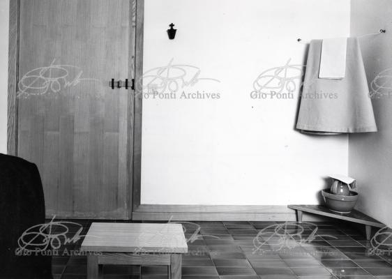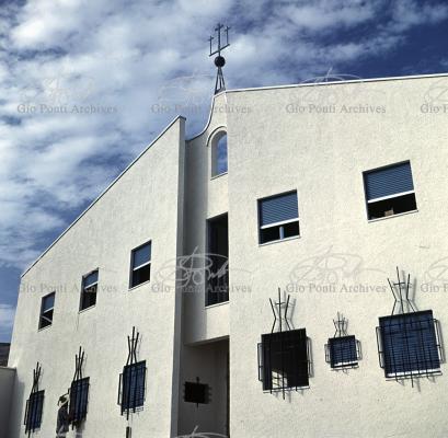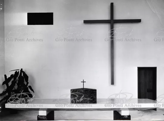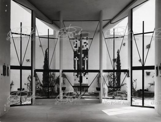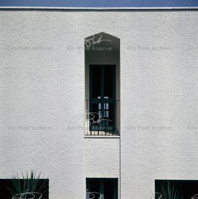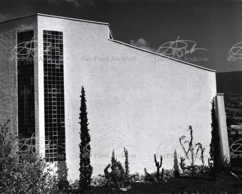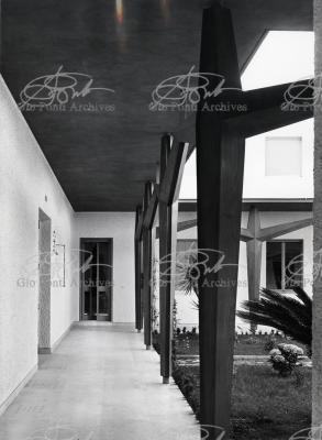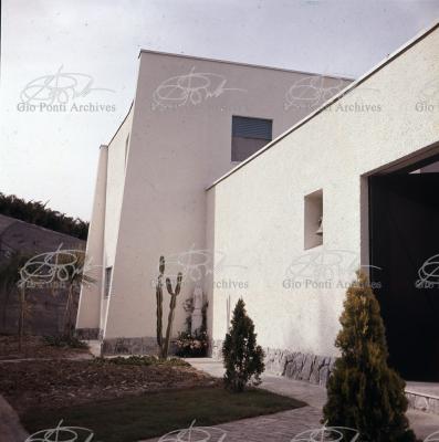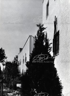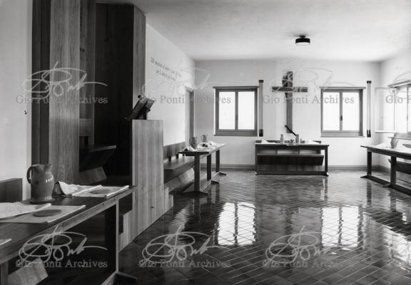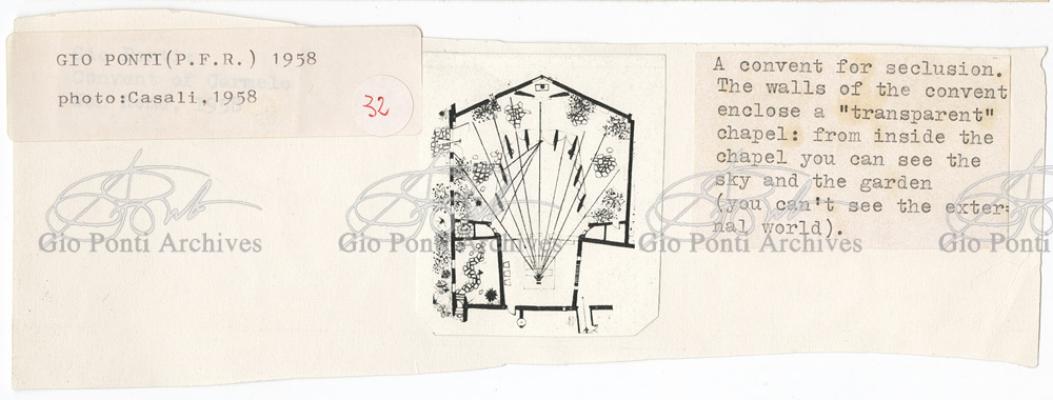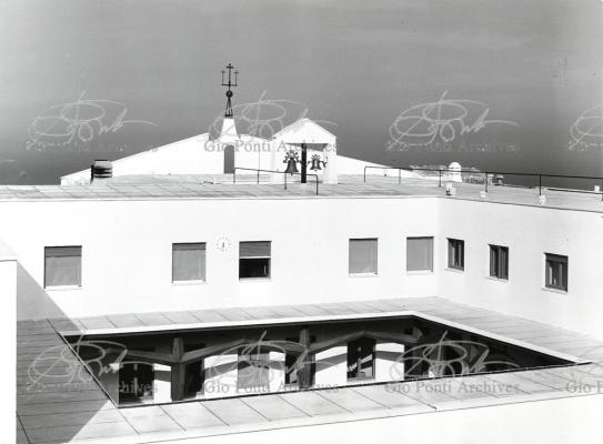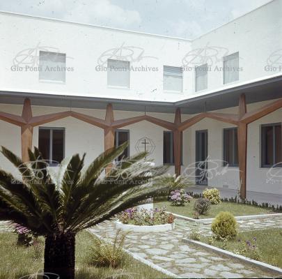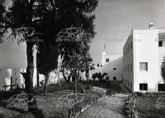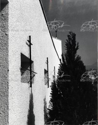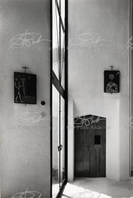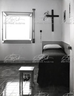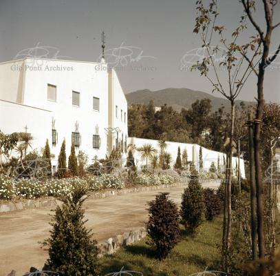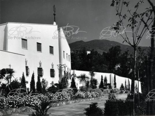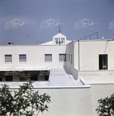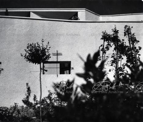 In Gio Ponti, the sacred was expressed in joy, as it was in this convent of enclosure contrasted in its day with Le Corbusier's monastery of La Tourette.The protagonists of this architecture are the white walls, in their contact with the greenery and the sky. Its heart is the chapel; transparent/non-transparent, it is set just between the outside world» and the convent. It does not have walls but screens. From the outside it looks closed, from the inside, open: open to an outside world of flowers and greenery, but one that is in turn enclosed, surrounded by a wall - the parvis. The cloister forms another heart: it is at the centre of the convent, with no more transparency, and its portico has light wooden crosses as columns. The wood leads to the interiors: in the cells, the refectory, and the choir, there is nothing but wood and white walls. The three years required to carry out this work made possible a unique (and never forgotten) debate between the nuns and the architect over what is a convent and what is architecture. It was the architect who said, to the Carmelites de Saint Elie: building a convent is not an architectural problem, but a religious one. And it was the nuns who, on Le Corbusier's death, had a Mess celebrated for him in the chapel of their convent. The project was by Gio Ponti and Antonio Fornaroli.