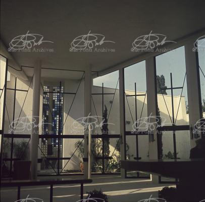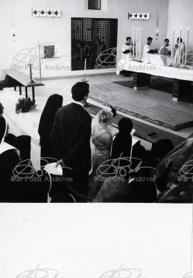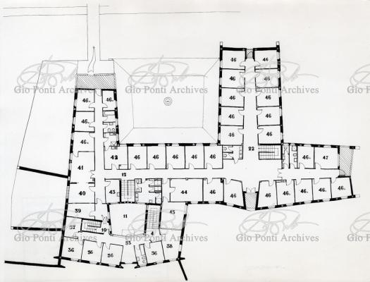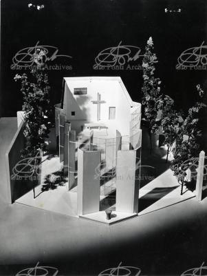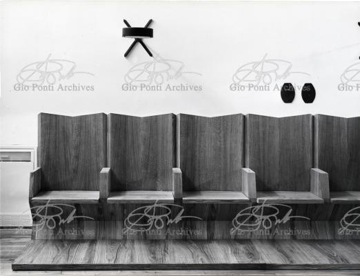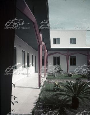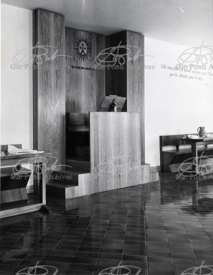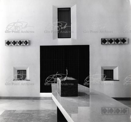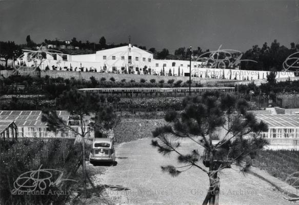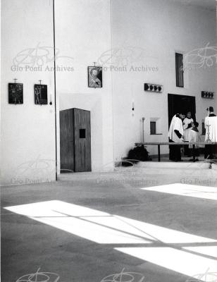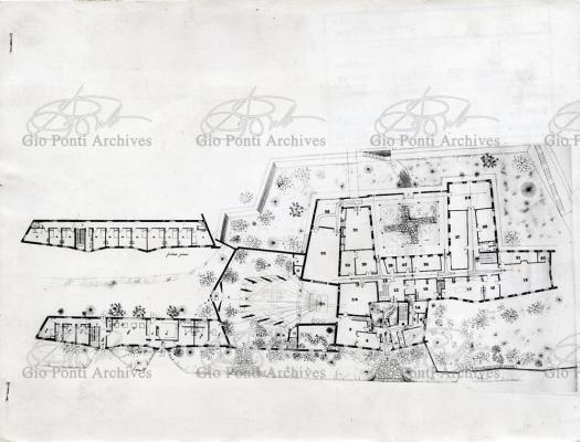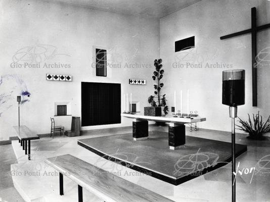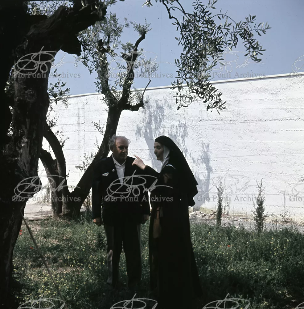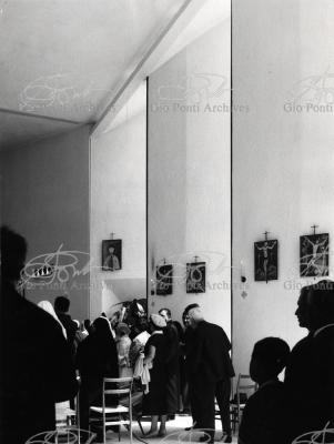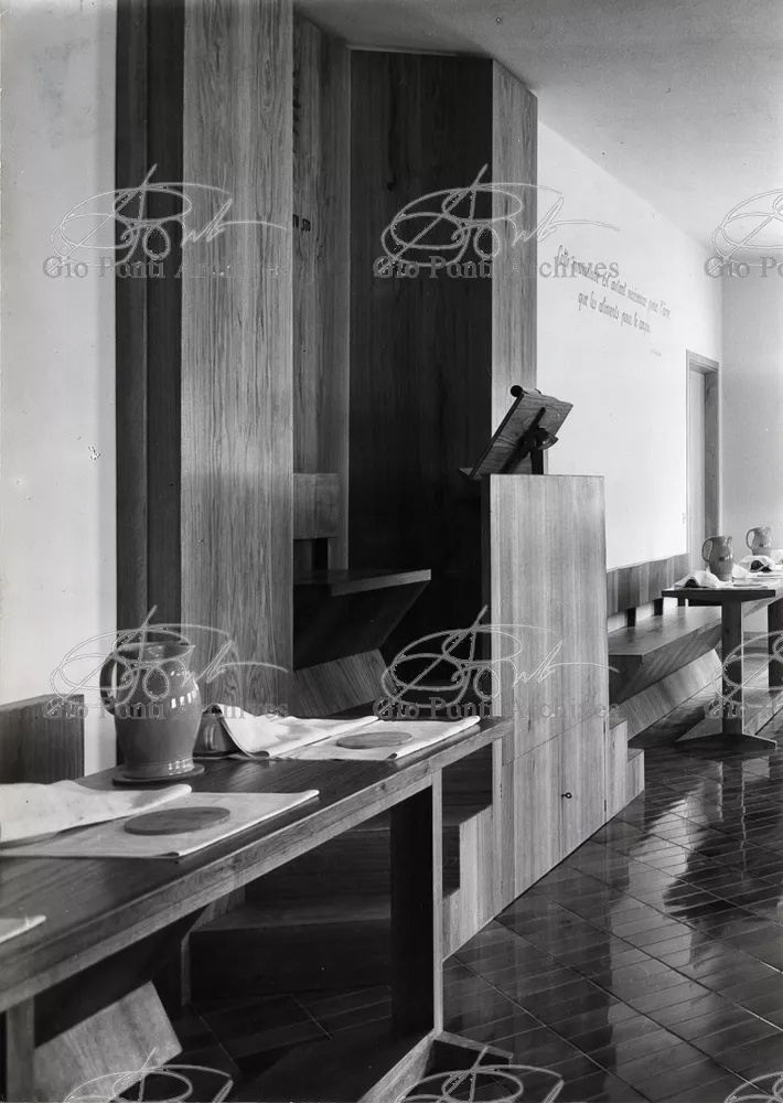 In Gio Ponti, the sacred was expressed in joy, as it was in this convent of enclosure contrasted in its day with Le Corbusier's monastery of La Tourette.The protagonists of this architecture are the white walls, in their contact with the greenery and the sky. Its heart is the chapel; transparent/non-transparent, it is set just between the outside world» and the convent. It does not have walls but screens. From the outside it looks closed, from the inside, open: open to an outside world of flowers and greenery, but one that is in turn enclosed, surrounded by a wall - the parvis. The cloister forms another heart: it is at the centre of the convent, with no more transparency, and its portico has light wooden crosses as columns. The wood leads to the interiors: in the cells, the refectory, and the choir, there is nothing but wood and white walls. The three years required to carry out this work made possible a unique (and never forgotten) debate between the nuns and the architect over what is a convent and what is architecture. It was the architect who said, to the Carmelites de Saint Elie: building a convent is not an architectural problem, but a religious one. And it was the nuns who, on Le Corbusier's death, had a Mess celebrated for him in the chapel of their convent. The project was by Gio Ponti and Antonio Fornaroli.