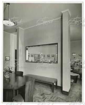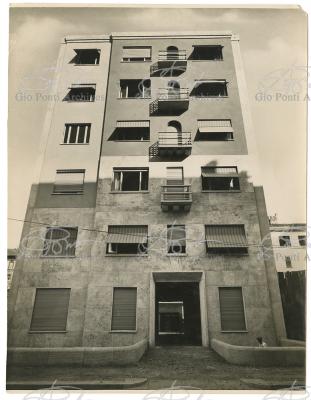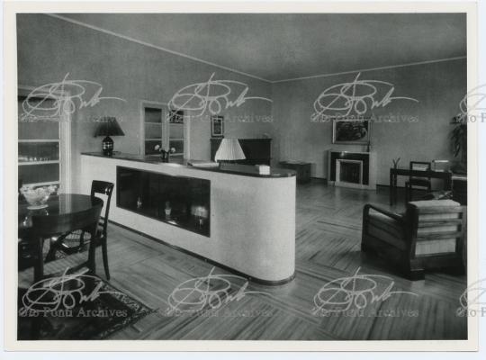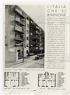 These consist often in apartment houses, each of which has a name: Domus Julia, Domus Carola, Domus Fausta, Domus Serena, Domus Aurelia, Domus Onoria, Domus Livia, Domus Flavia, Domus Adele, and Domus Alba. The Domuses of Via De Togni (Julia, Carola, Fausta), like the Domuses of Via Letizia (Livia, Serena, Onoria, Aurelia) were designed to create, when lined up, a unitary road scene, a stretch of street, colored in the Italian manner (ocher, green, yellow and red facades). And the apartments have innovative layouts, as concentration of service areas to increase living space; built-in closets and facilities, to free the space from furniture. These innovations were intended for use in ordinary housing: elements to be adopted in the building of a happy city of the future. This was the whole point. Ponti indicated other elements to be adopted in other Milanese houses that he designed the Rasini, Marmont and Laporte houses: roof terraces, loggias on the facade, and, above all, an out-of scale room in every apartment: a man wants to have, in at least one room of the house, a wall five or six meters away from him and, if possible, a ceiling at least four meters high.. Gio Ponti always thought in terms of repeatability; in his designs for housing he never envisaged a scale for others that he would not have desired for himself. His Existenz-minimum demanded space, even if only visual, rather than objects.