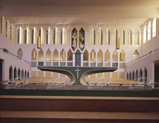 disse Luigi Moretti ..Questa quasi immateriale struttura è essa, ed essa sola, la chiesa. E coglieva la religiosità non-liturgica di quest'architettura, in cui la vela, che si eleva (alta 53 metri) sopra la chiesa e non comunica internamente con essa, è un canto esterno, convoca l'esterno e si riflette e si moltiplica all'esterno, negli specchi d'acqua antistanti: composta da due sottili pareti parallele, traforate, una a un metro dall'altra, su cui gioca la luce, è un'acrobazia architettonica, impasto di concretezza e di aria dedicata al cielo. All'interno della chiesa si raccolgono i fedeli: ma anche qui lo spirito è chiaro e lieve: spazio bianco e verde, muri traforati, un disegno pontiano continuo cui appartengono anche i due angelici affreschi, e non c'è altro. Né altre decorazioni, né interventi altrui. L'arcivescovo Guglielmo Motolese, committente illuminato, ha protetto il suo architetto. Non così la Città, per ora, perché l'esterno della cattedrale, vasche comprese, è aggredito dall'incuria e dalla speculazione — non aggredito dal verde, come l'architetto sperava.E vorremmo dire anche questo: il giorno dell'inaugurazione della cattedrale, dopo i discorsi delle Autorità, applauditi come discorsi, il discorso dell'Architetto fu preceduto dall'applauso un fragore lunghissimo- da parte della folla, e ascoltato non come discorso ma come desiderio. E il giorno dopo la gente dì Taranto venne alla cattedrale portando con sé vasi e piante da piantare, perché l'architetto sognava che il verde rampicante coprisse le pareti bianche della sua architettura. Noi abbiamo conservato la registrazione non del discorso ma dell'applauso, dieci minuti di tuono.