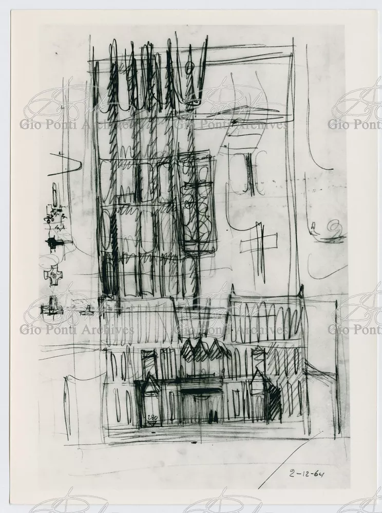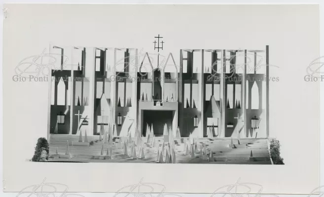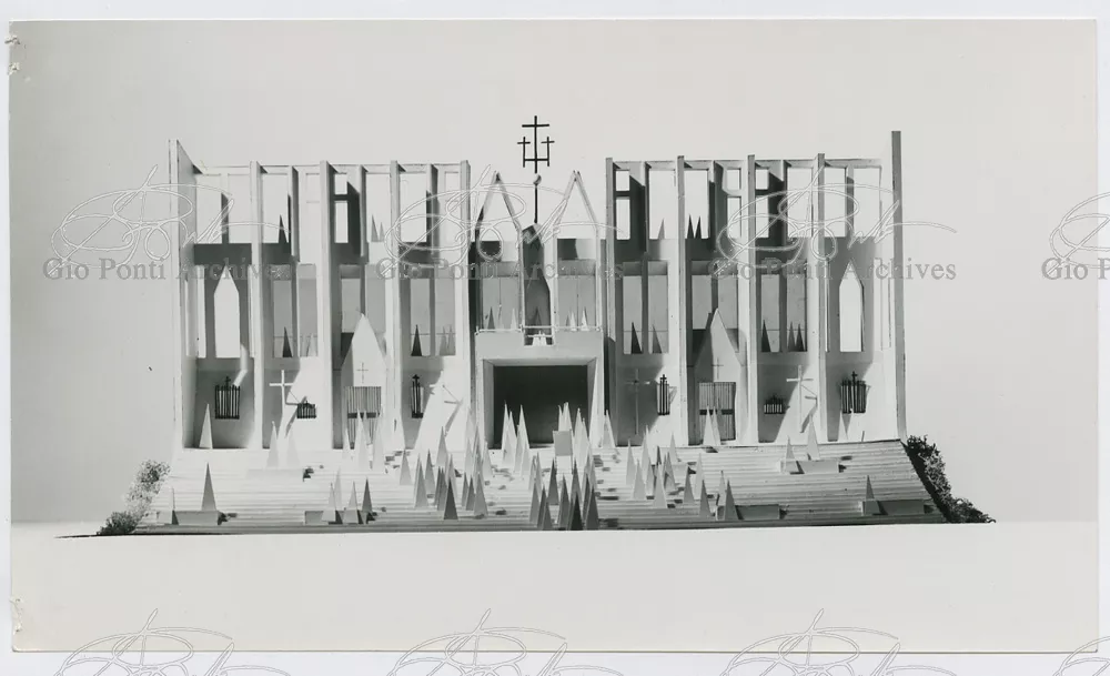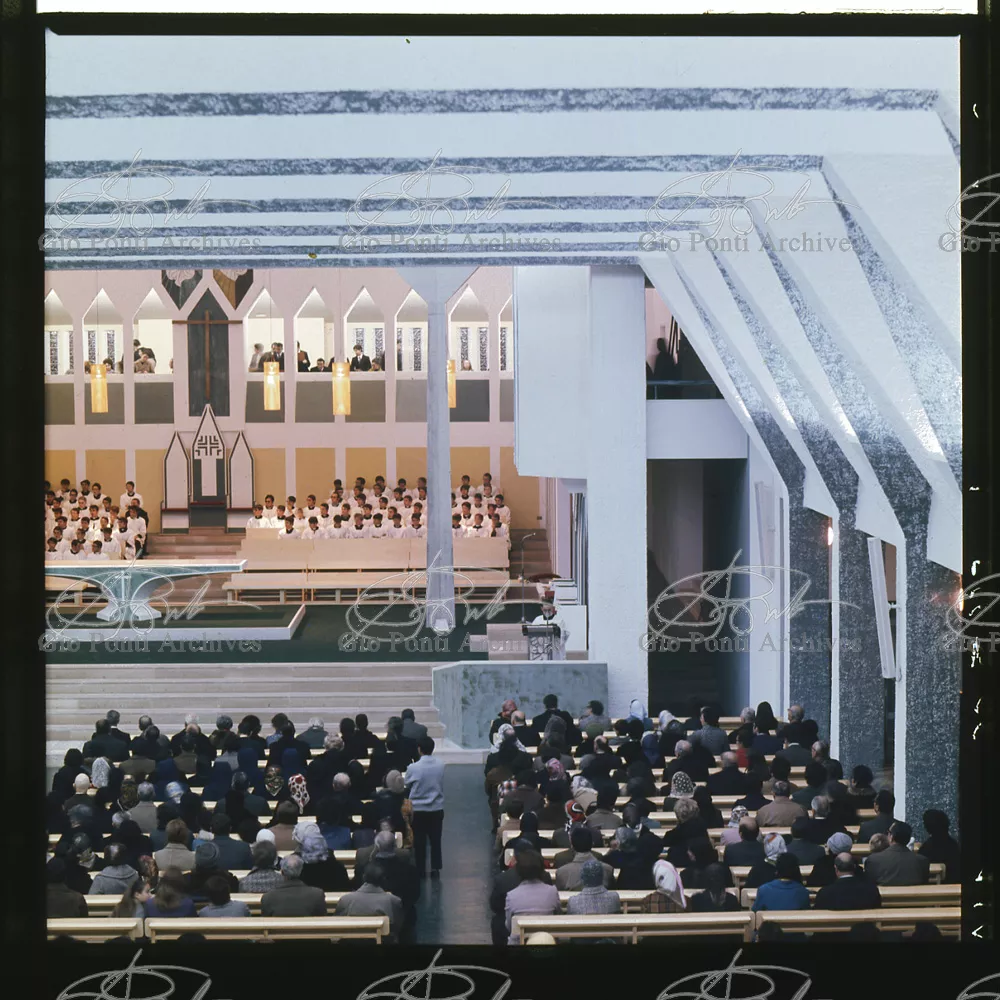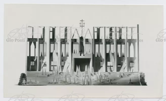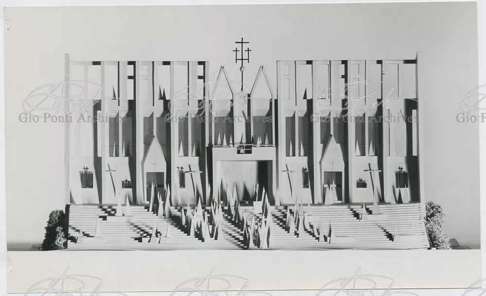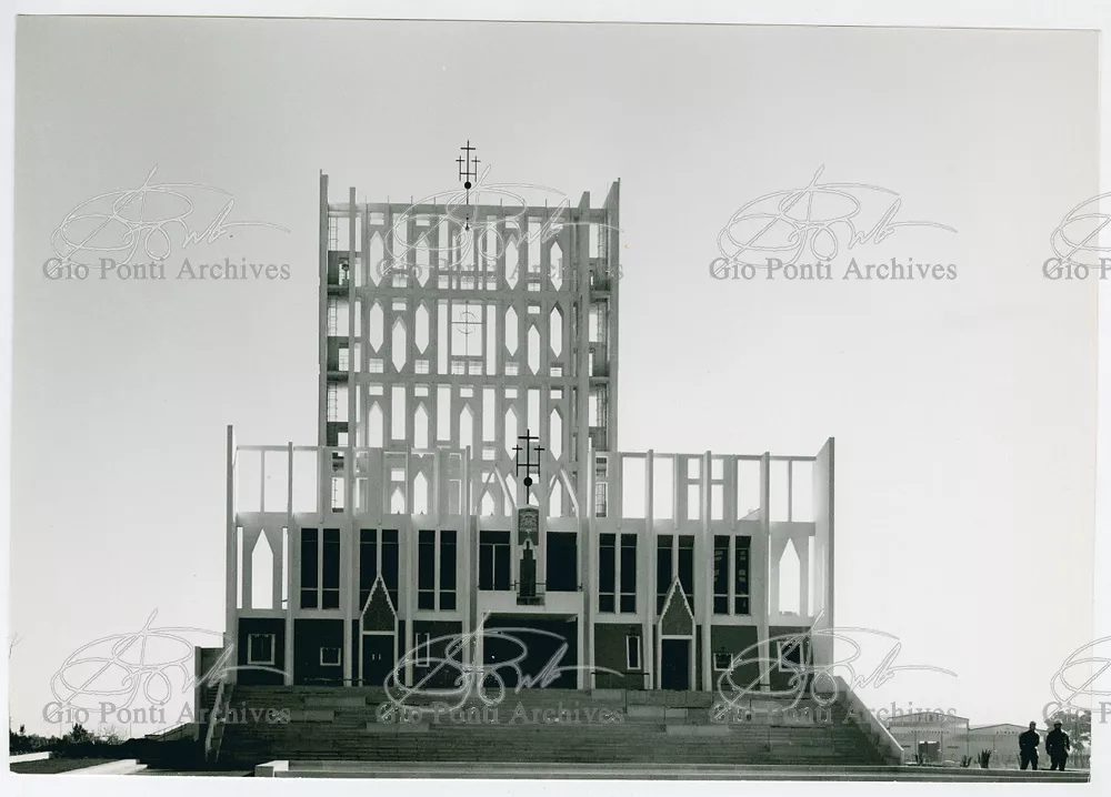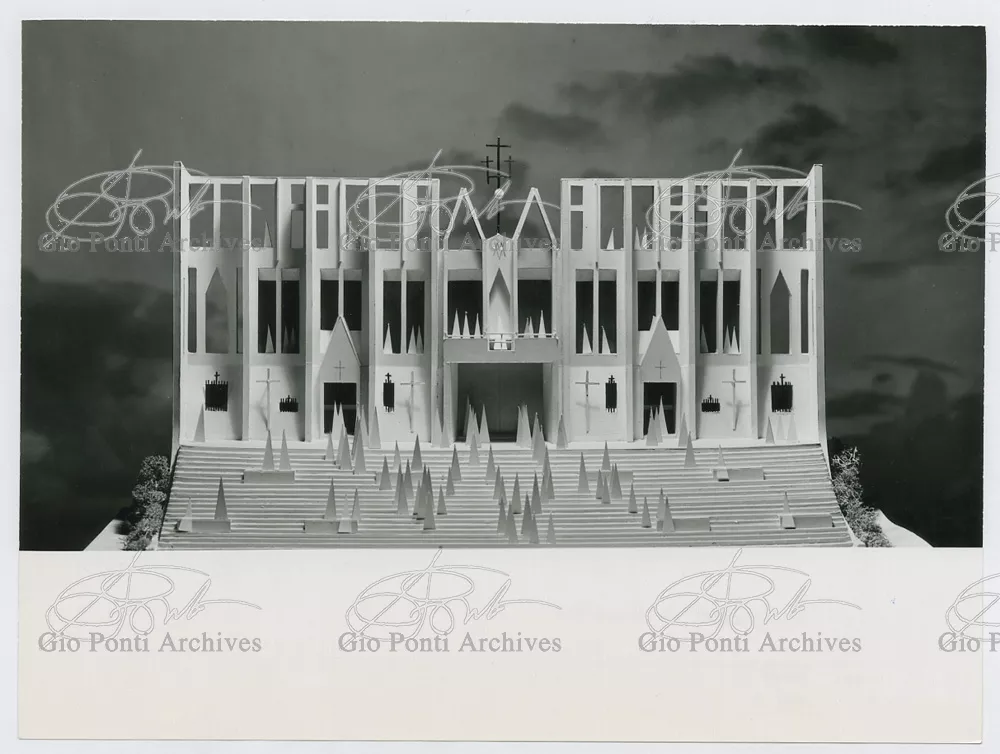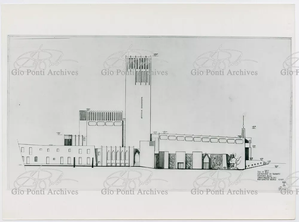 La cattedrale di Taranto che oggi sta sostituendo in popolarità la Torre Pirelli, si fonda su un'idea senza precedenti: la vela (così l'ha chiamata subito la gente) in luogo della cupola, o delle torri, come alto segnale. La vela è una facciata sul cielo. Dice Ponti: Ho pensato: due facciate. Una, la minore, salendo la scalinata, con le porte per accedere alla chiesa. L'altra, la maggiore, accessibile solo allo sguardo e al vento: una facciata per l'aria, con ottanta finestre aperte sull'immenso, che è la dimensione del mistero…