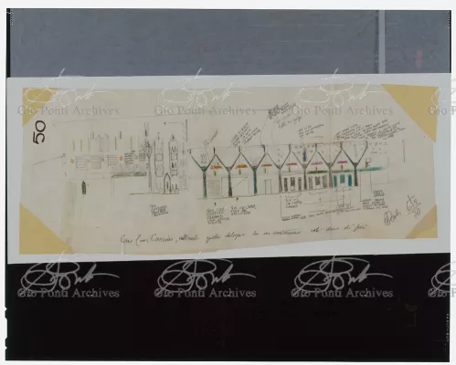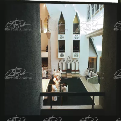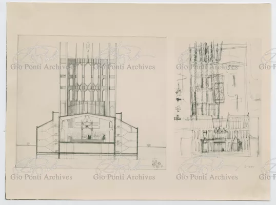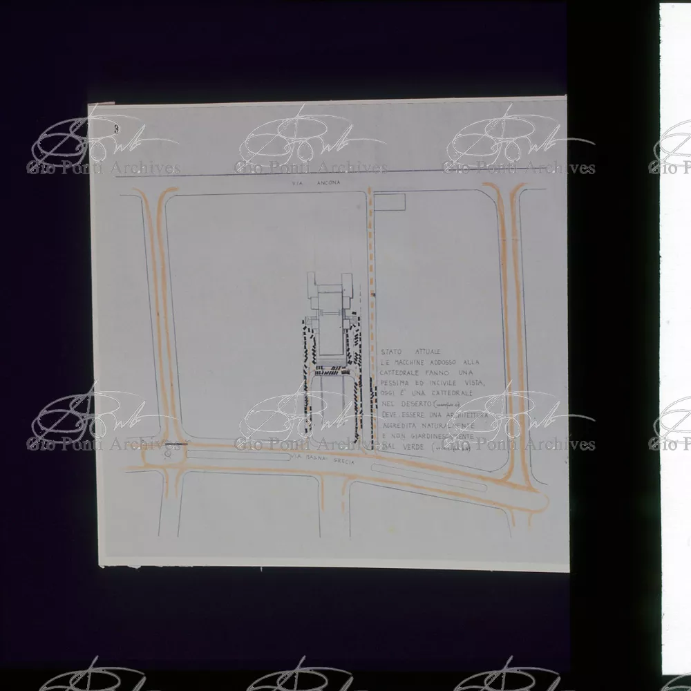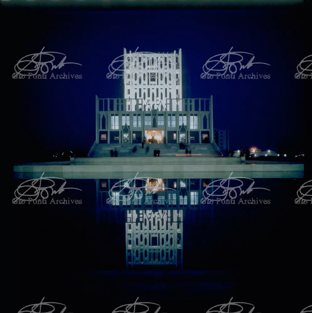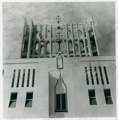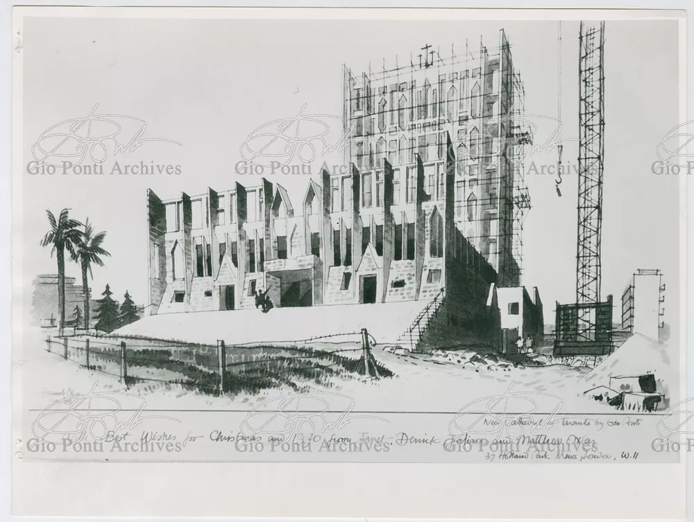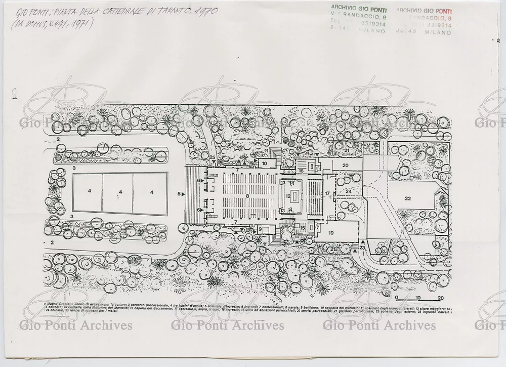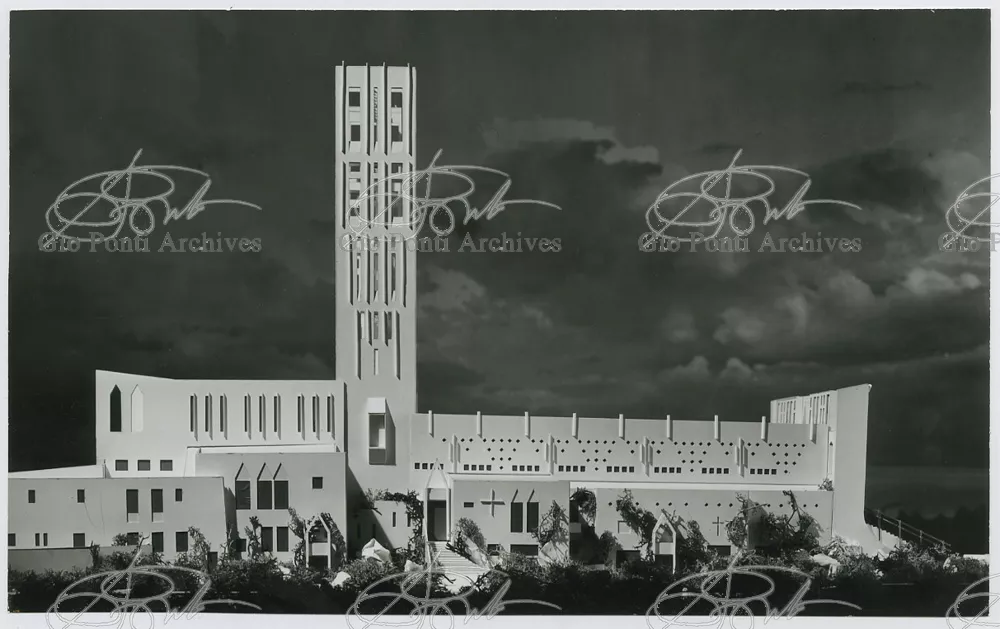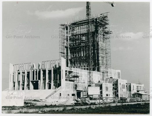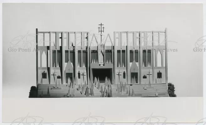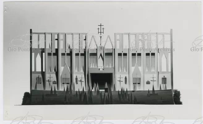 La cattedrale di Taranto che oggi sta sostituendo in popolarità la Torre Pirelli, si fonda su un'idea senza precedenti: la vela (così l'ha chiamata subito la gente) in luogo della cupola, o delle torri, come alto segnale. La vela è una facciata sul cielo. Dice Ponti: Ho pensato: due facciate. Una, la minore, salendo la scalinata, con le porte per accedere alla chiesa. L'altra, la maggiore, accessibile solo allo sguardo e al vento: una facciata per l'aria, con ottanta finestre aperte sull'immenso, che è la dimensione del mistero…