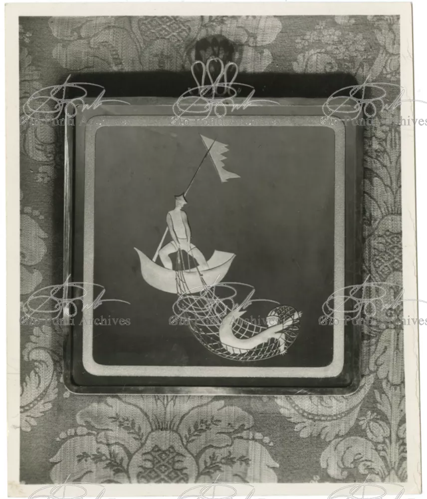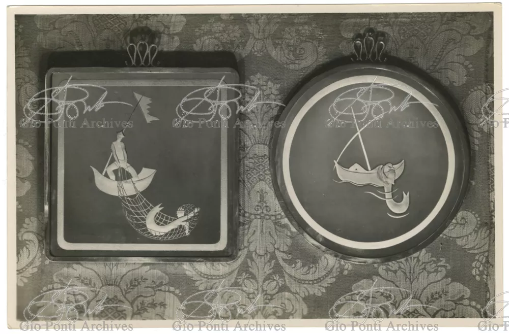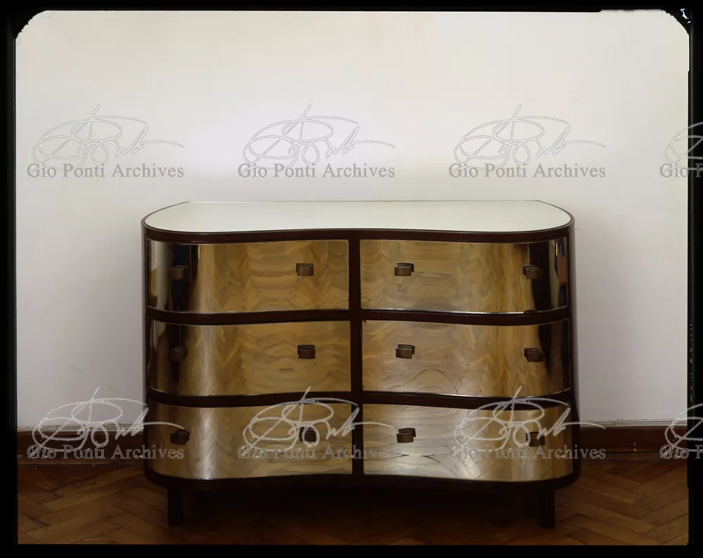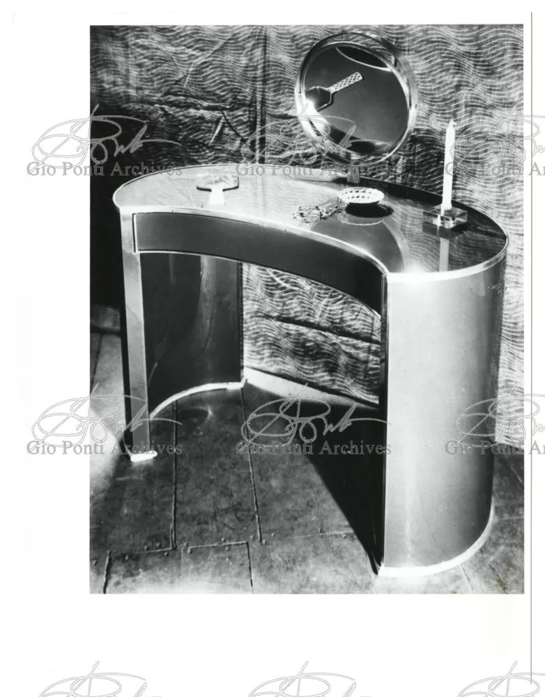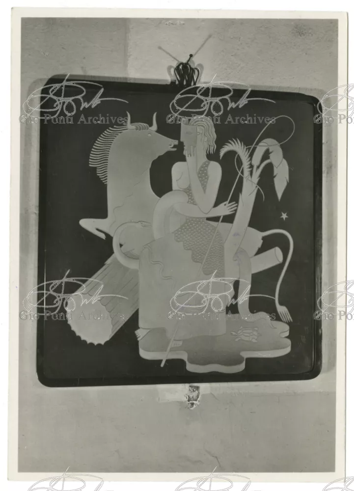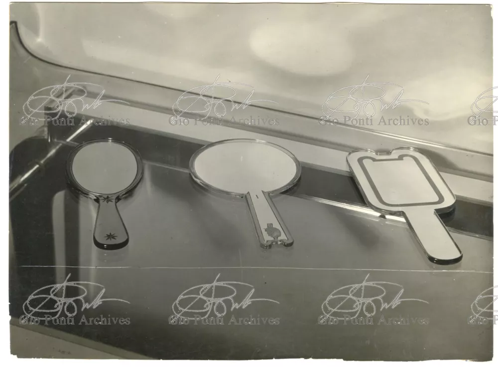 For Gio Ponti crystal was the material for objects of great luxury. Luxury puts the designer's skills to no less of a test than the economic. In 1930 Gio Ponti designed for Fontana the large table with black crystal top and cut crystal legs that was presented at the 4th Triennial Exhibition in Monza. In 1931 Ponti began to design for Fontana a series of pieces of furniture topped with mirrors, exceptional furniture together with the first totally transparent ones made entirely of glass. In the spring of 1933 Ponti took over, along with Pietro Chiesa, the artistic direction of Fontana Arte, a branch of the Fontana firm. And the Fontana Arte output began to expand as had happened with Richard-Ginori, producing a multitude of large and small objects, from paperweights to lamps. At the same time he gave Fontana Arte the opportunity again as with Richard-Ginori to produce major works, such as the stained-glass walls he designed for the Faculty of Mathematics at Rome University, 1934, and for the Exhibition of the Catholic Press in the Vatican, 1936.