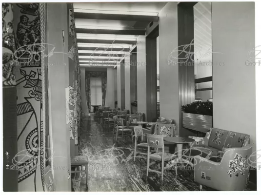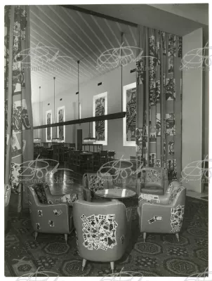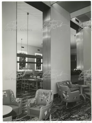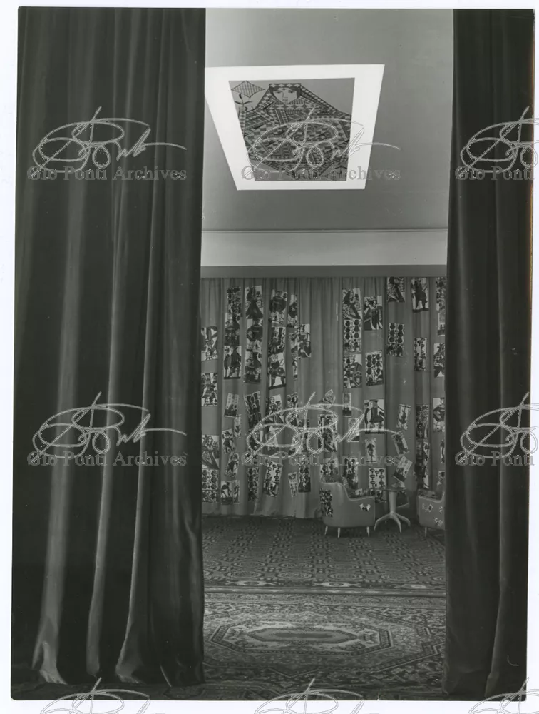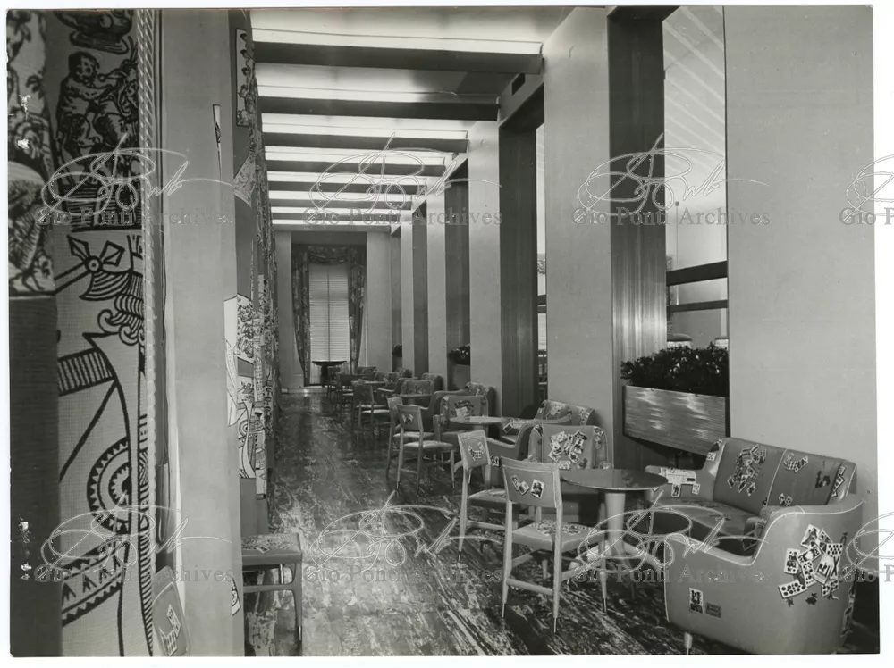 On the other hand Ponti, when publishing these works of his, pointed out, first of all, the elegant new materials used: anodized aluminium, PVC lining, rubber flooring; the Fantastico P., new Pirelli rubber flooring, was designed by Ponti.