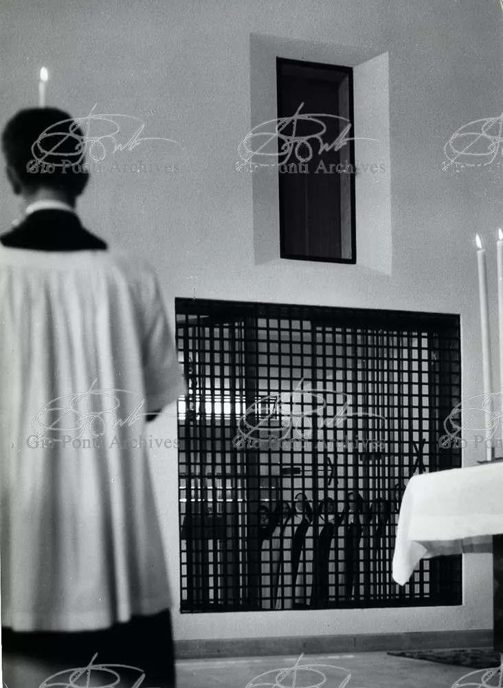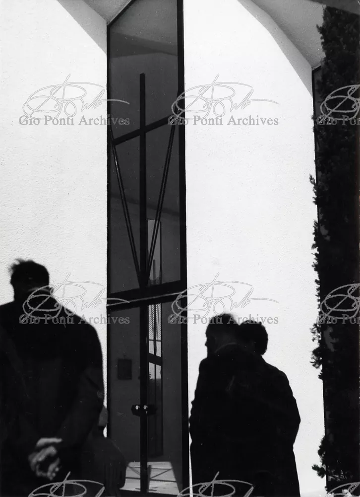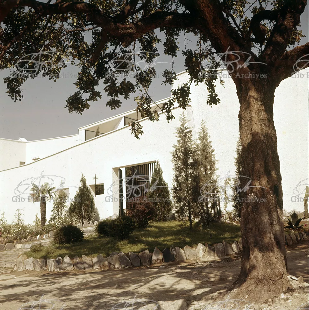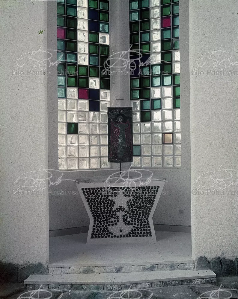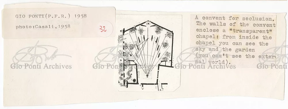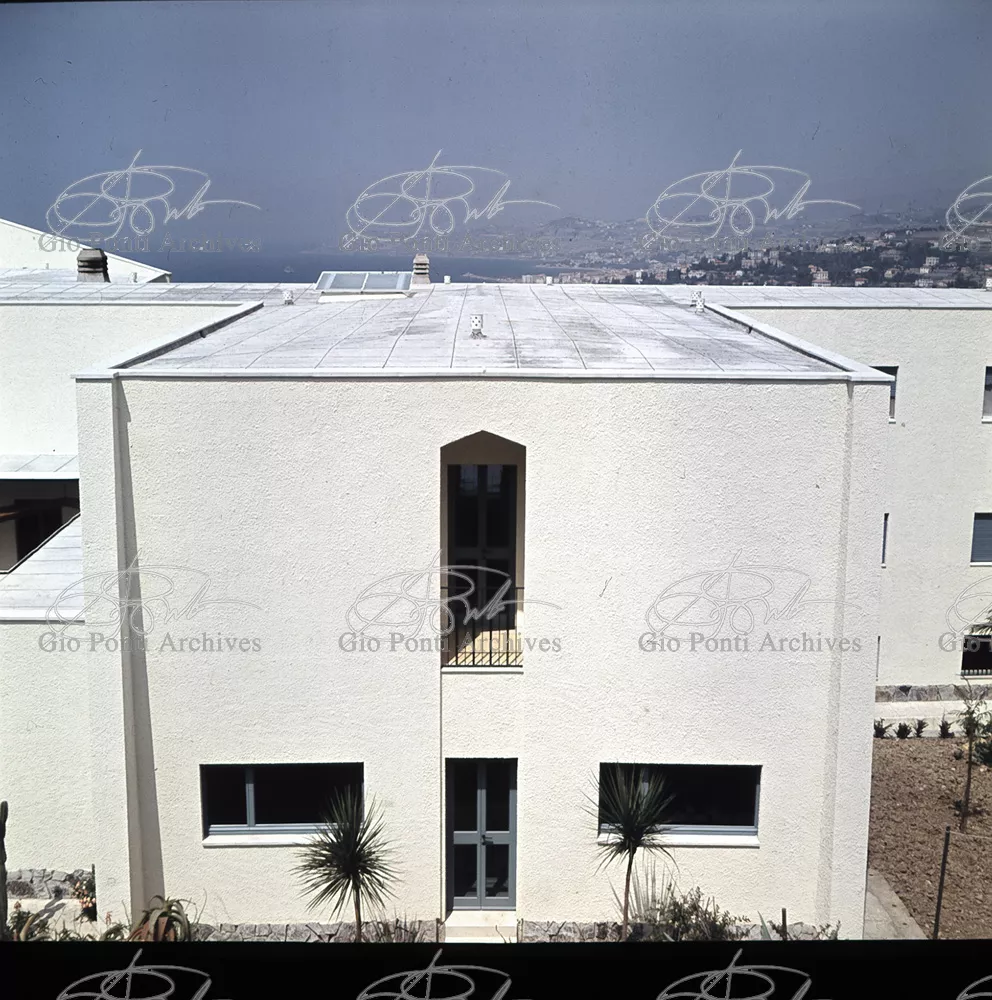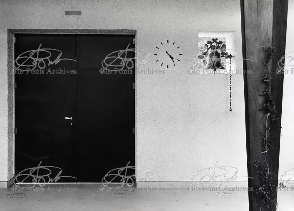 In Gio Ponti, the sacred was expressed in joy, as it was in this convent of enclosure contrasted in its day with Le Corbusier's monastery of La Tourette.The protagonists of this architecture are the white walls, in their contact with the greenery and the sky. Its heart is the chapel; transparent/non-transparent, it is set just between the outside world» and the convent. It does not have walls but screens. From the outside it looks closed, from the inside, open: open to an outside world of flowers and greenery, but one that is in turn enclosed, surrounded by a wall - the parvis. The cloister forms another heart: it is at the centre of the convent, with no more transparency, and its portico has light wooden crosses as columns. The wood leads to the interiors: in the cells, the refectory, and the choir, there is nothing but wood and white walls. The three years required to carry out this work made possible a unique (and never forgotten) debate between the nuns and the architect over what is a convent and what is architecture. It was the architect who said, to the Carmelites de Saint Elie: building a convent is not an architectural problem, but a religious one. And it was the nuns who, on Le Corbusier's death, had a Mess celebrated for him in the chapel of their convent. The project was by Gio Ponti and Antonio Fornaroli.