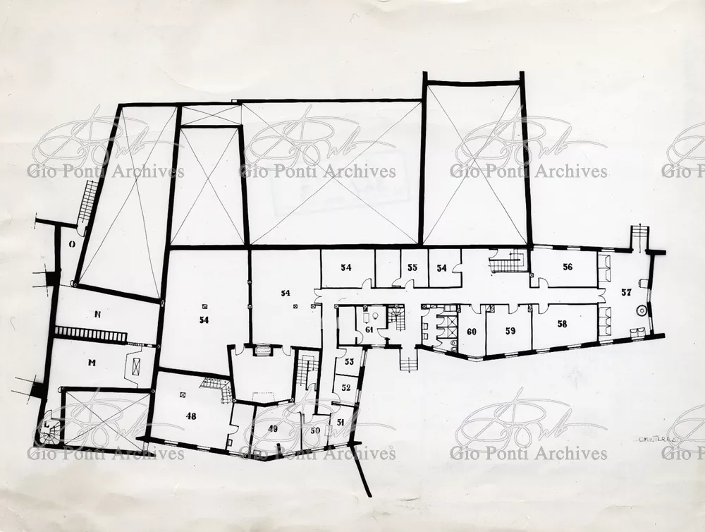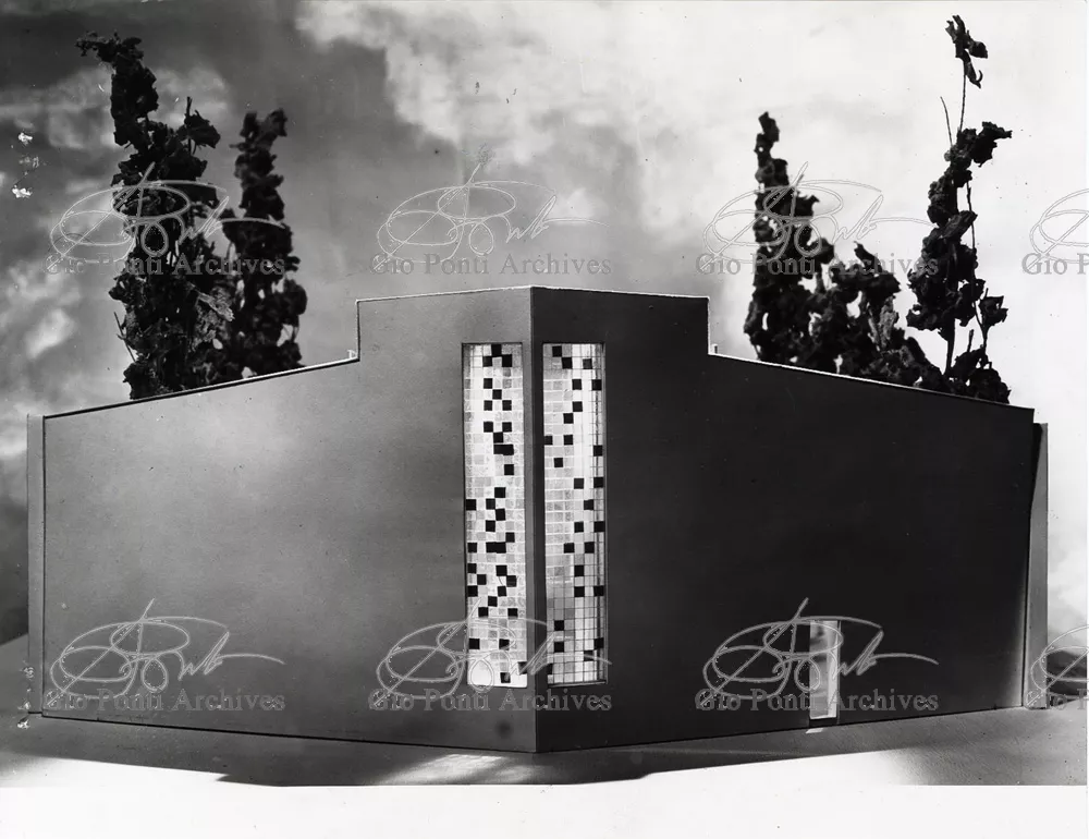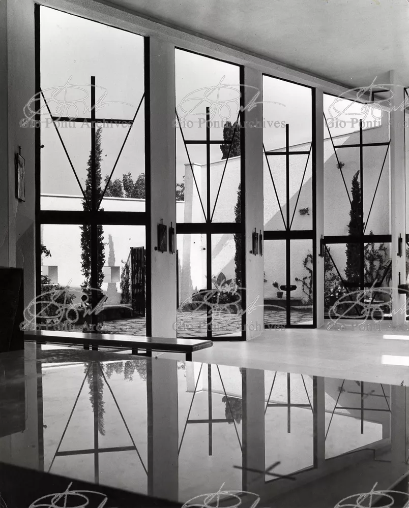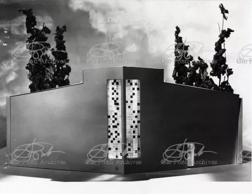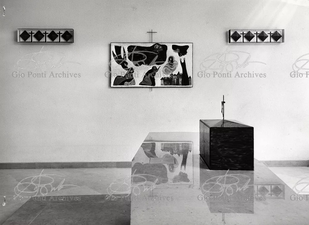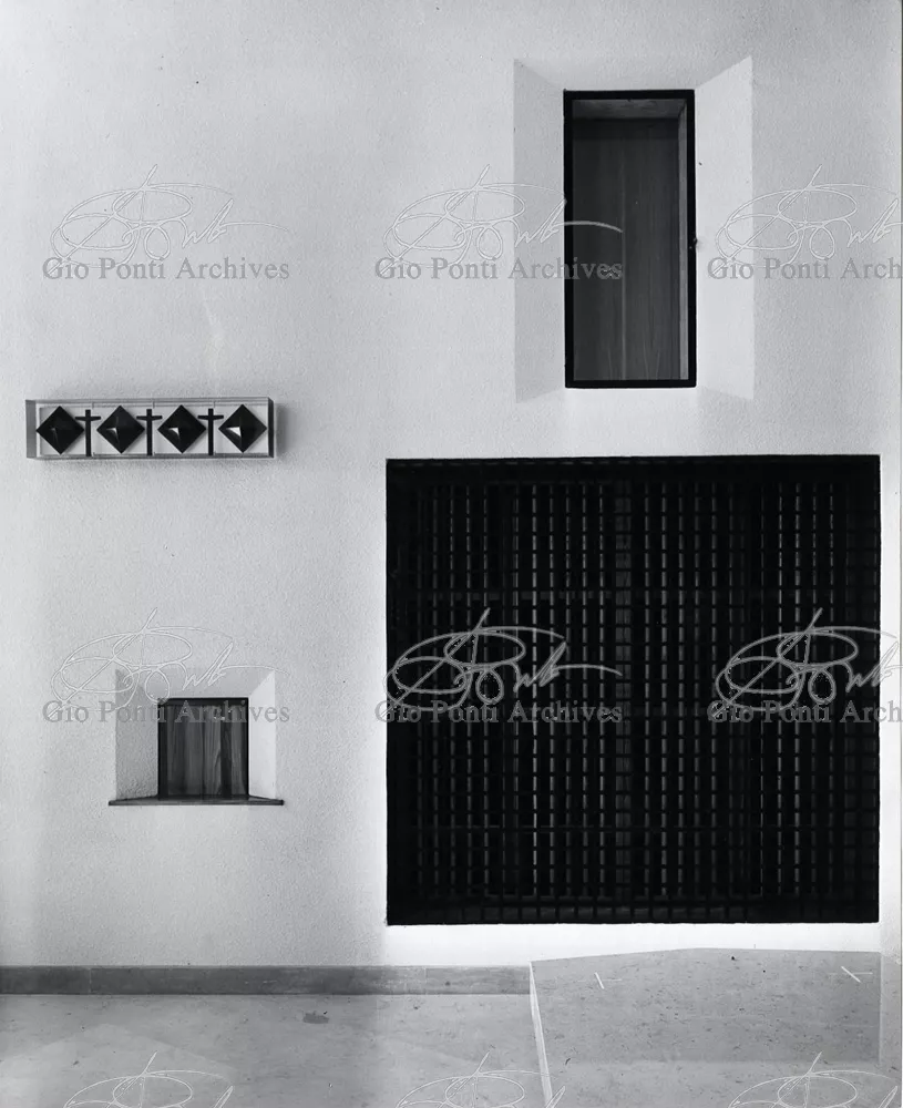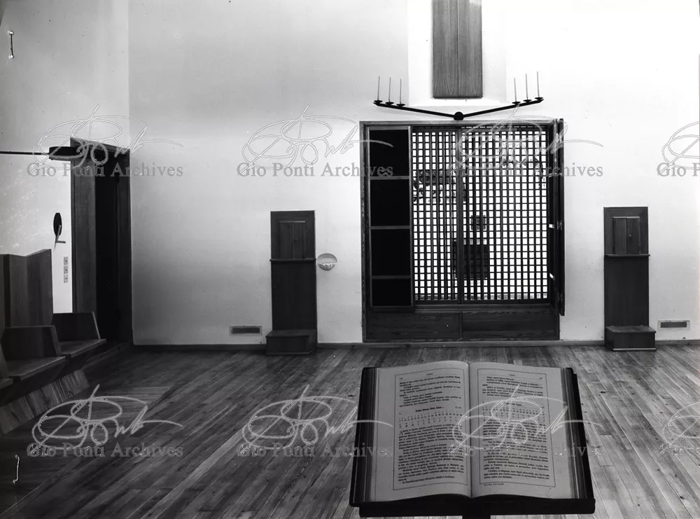 In Gio Ponti, the sacred was expressed in joy, as it was in this convent of enclosure contrasted in its day with Le Corbusier's monastery of La Tourette.The protagonists of this architecture are the white walls, in their contact with the greenery and the sky. Its heart is the chapel; transparent/non-transparent, it is set just between the outside world» and the convent. It does not have walls but screens. From the outside it looks closed, from the inside, open: open to an outside world of flowers and greenery, but one that is in turn enclosed, surrounded by a wall - the parvis. The cloister forms another heart: it is at the centre of the convent, with no more transparency, and its portico has light wooden crosses as columns. The wood leads to the interiors: in the cells, the refectory, and the choir, there is nothing but wood and white walls. The three years required to carry out this work made possible a unique (and never forgotten) debate between the nuns and the architect over what is a convent and what is architecture. It was the architect who said, to the Carmelites de Saint Elie: building a convent is not an architectural problem, but a religious one. And it was the nuns who, on Le Corbusier's death, had a Mess celebrated for him in the chapel of their convent. The project was by Gio Ponti and Antonio Fornaroli.