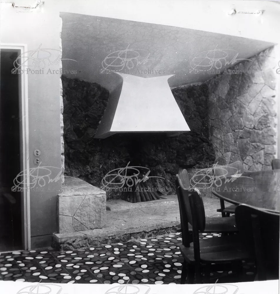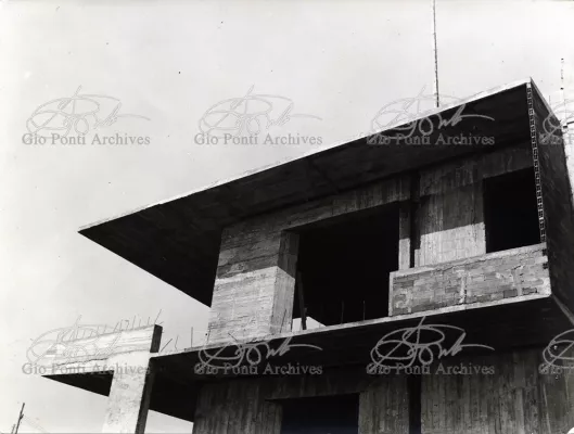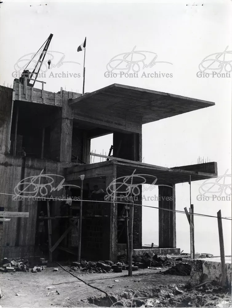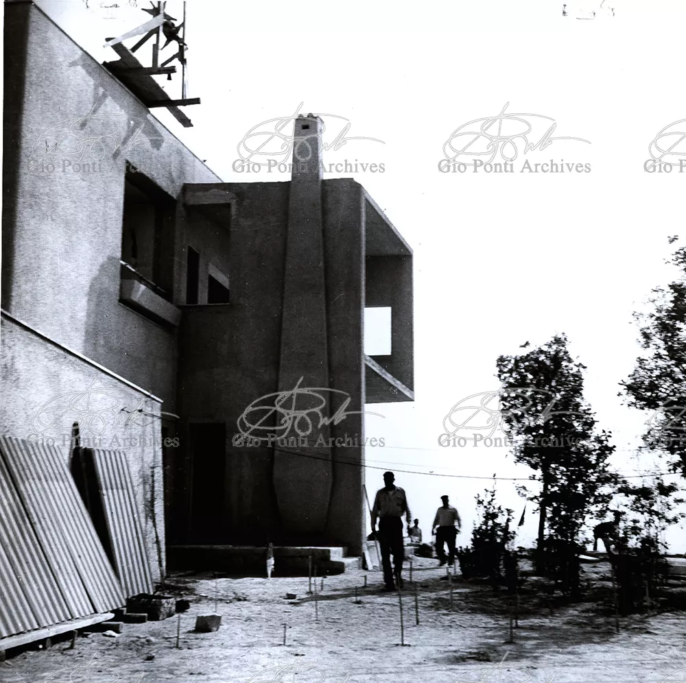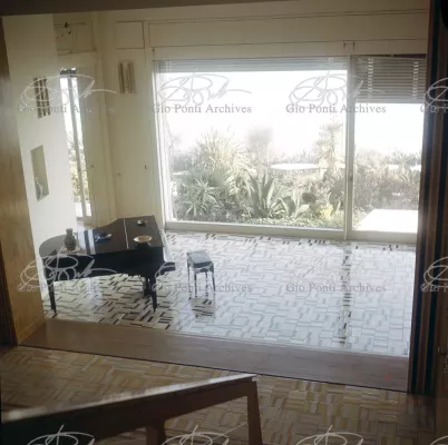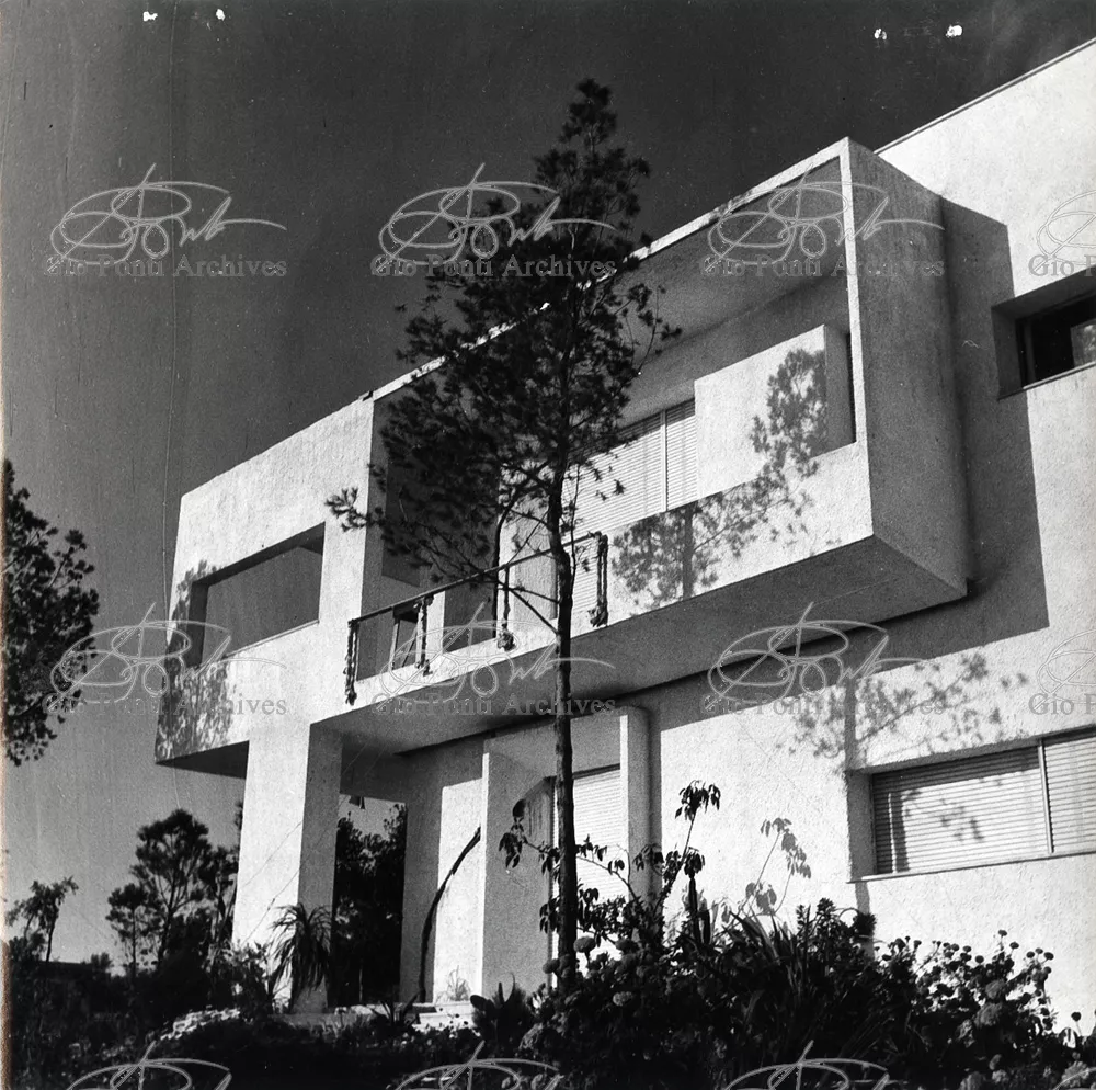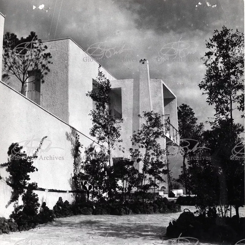 This villa appears in Aria d'ltalia Espressione di Gio Ponti,' VIII, 1954 among the few examples chosen of Ponti's Mediterranean architecture attention is drawn to the projecting loggia, as deep as a room, with its own windows, cut in the wall, and fireplace: a volume added to the flat front.