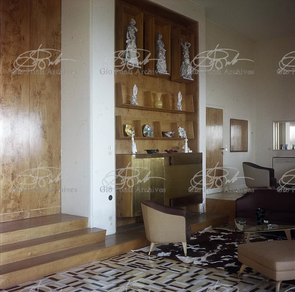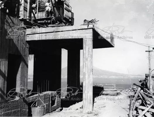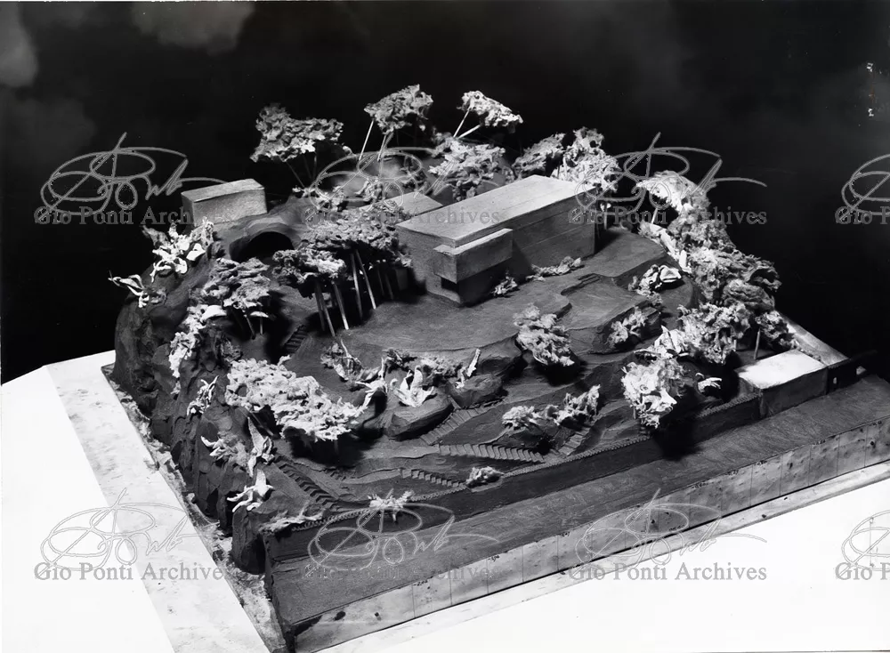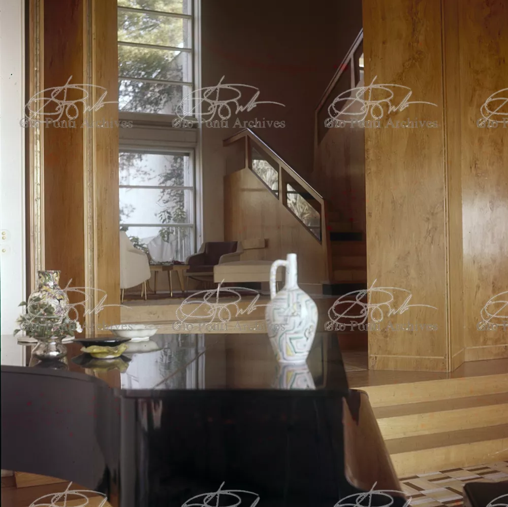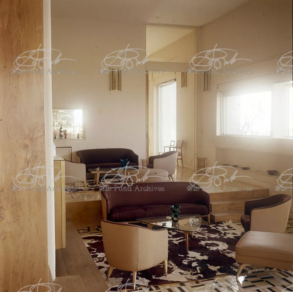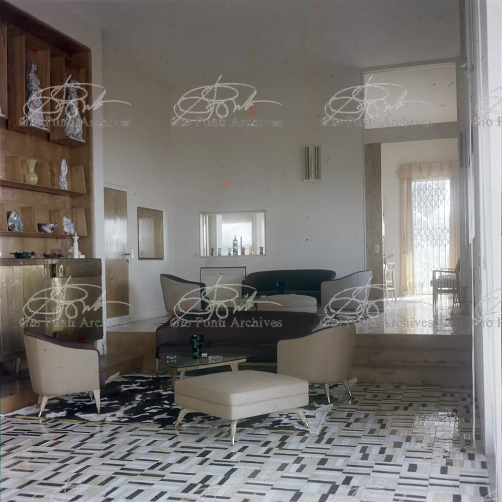 This villa appears in Aria d'ltalia Espressione di Gio Ponti,' VIII, 1954 among the few examples chosen of Ponti's Mediterranean architecture attention is drawn to the projecting loggia, as deep as a room, with its own windows, cut in the wall, and fireplace: a volume added to the flat front.